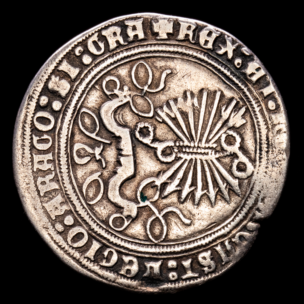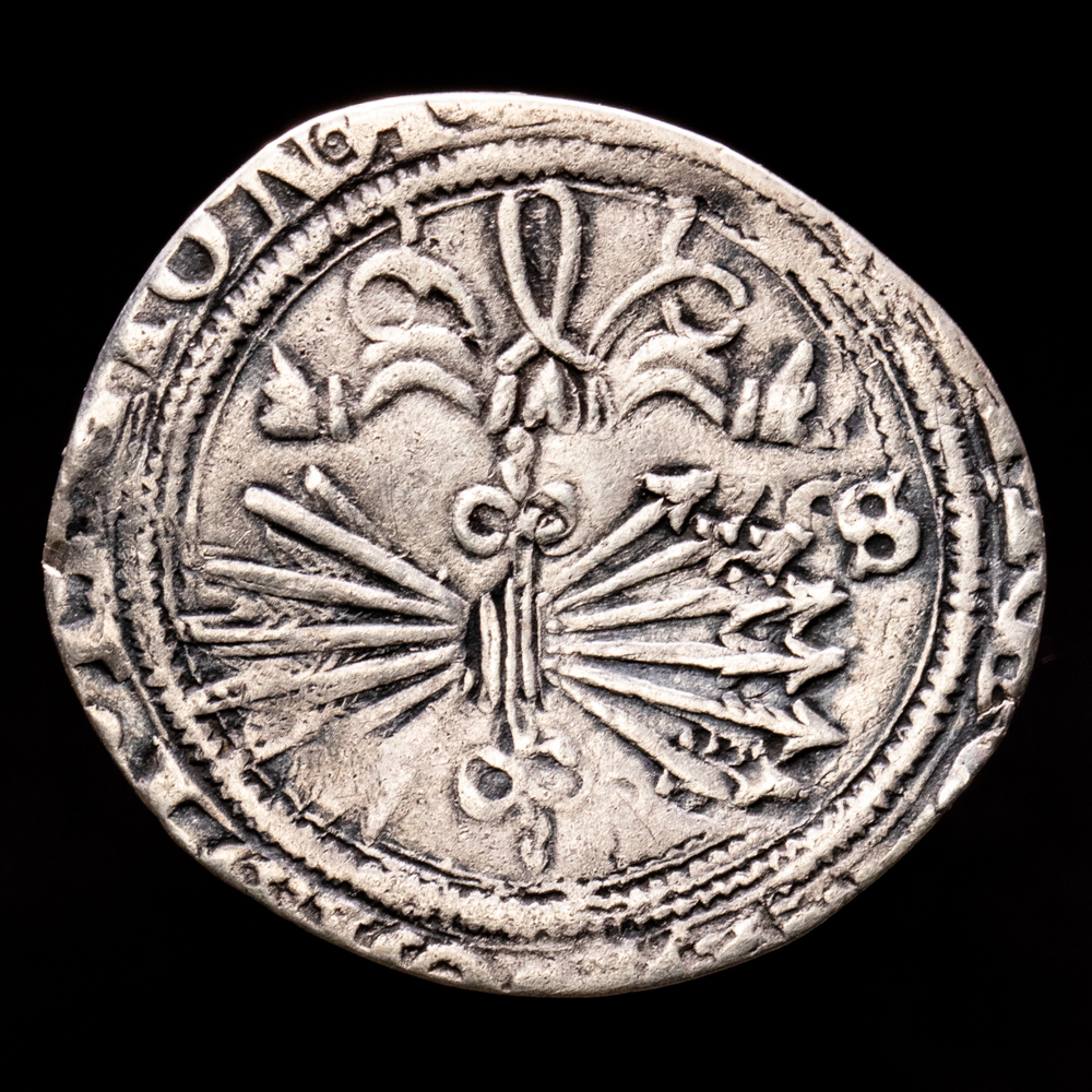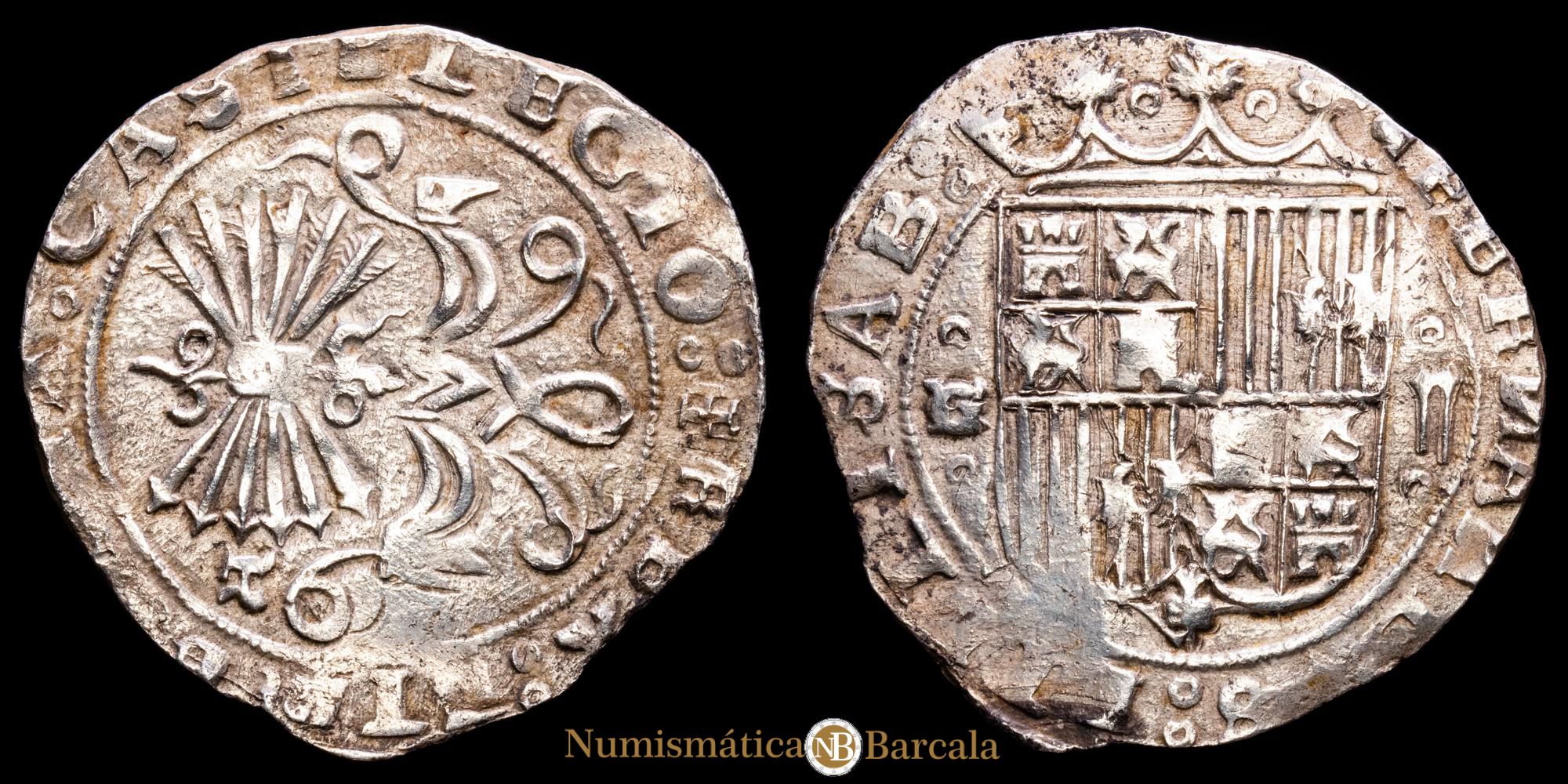Numismática Barcala > Productos > Monarquia Española > Reyes católicos > Fernando e Isabel. 2 Reales (6,65 g.). Granada, (1474-1504). Ensayador G/R. AC-NO CITA. MBC+. Rara variante con la G rectificada S·R