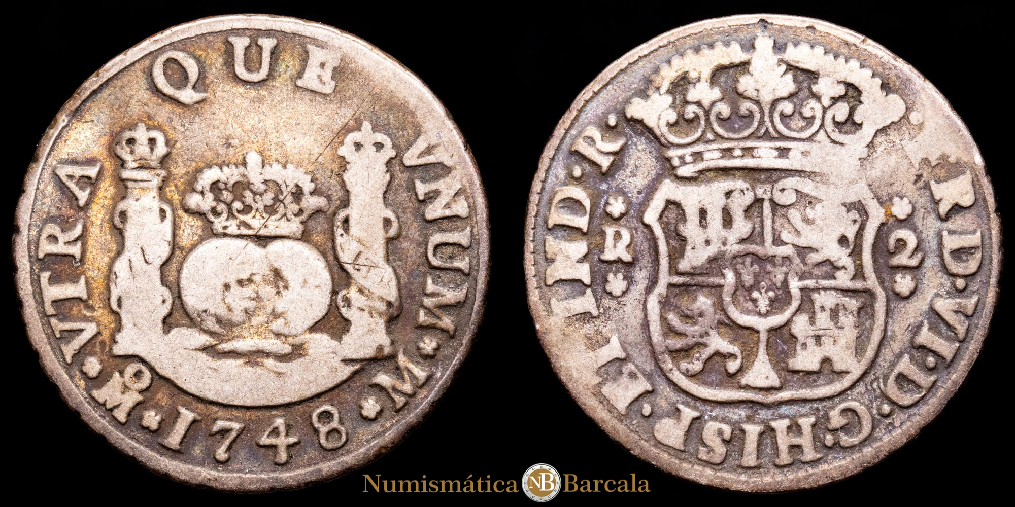 Numismática Barcala > Productos > Monarquia Española > Borbones > 1746-1759 Fernando VI > Fernando VI. 2 Reales. (6,32 g.). Mexico. 1748. Ensayador M. AC-287. MBC-.