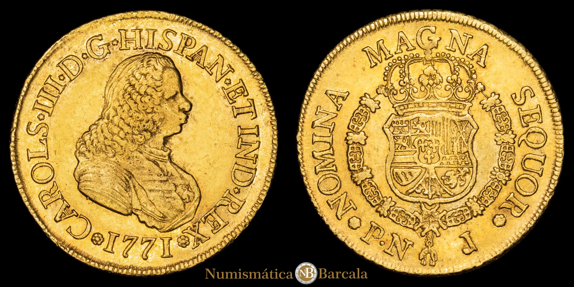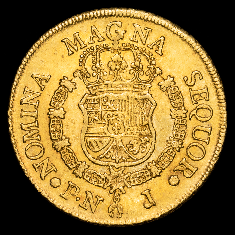 Carlos III. 8 Escudos. (26,96 g.). Popayán. 1771. Ensayador J. AC-2036. EBC. Restos de brillo original. Atractivo ejemplar.