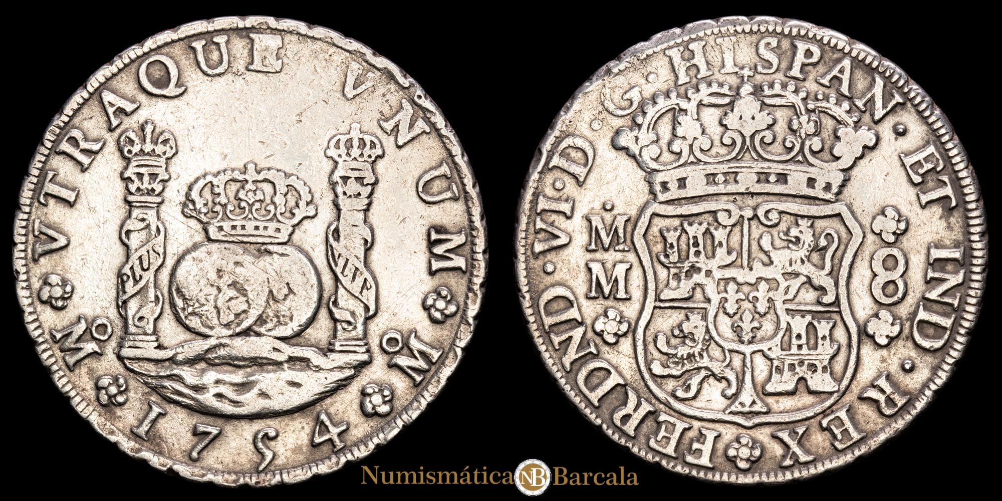 Numismática Barcala > Productos > Monarquia Española > Borbones > 1746-1759 Fernando VI > Fernando VI. 8 Reales. (26,75g.). Mexico. 1754. Ensayador MM/MF. AC-486. VF+.