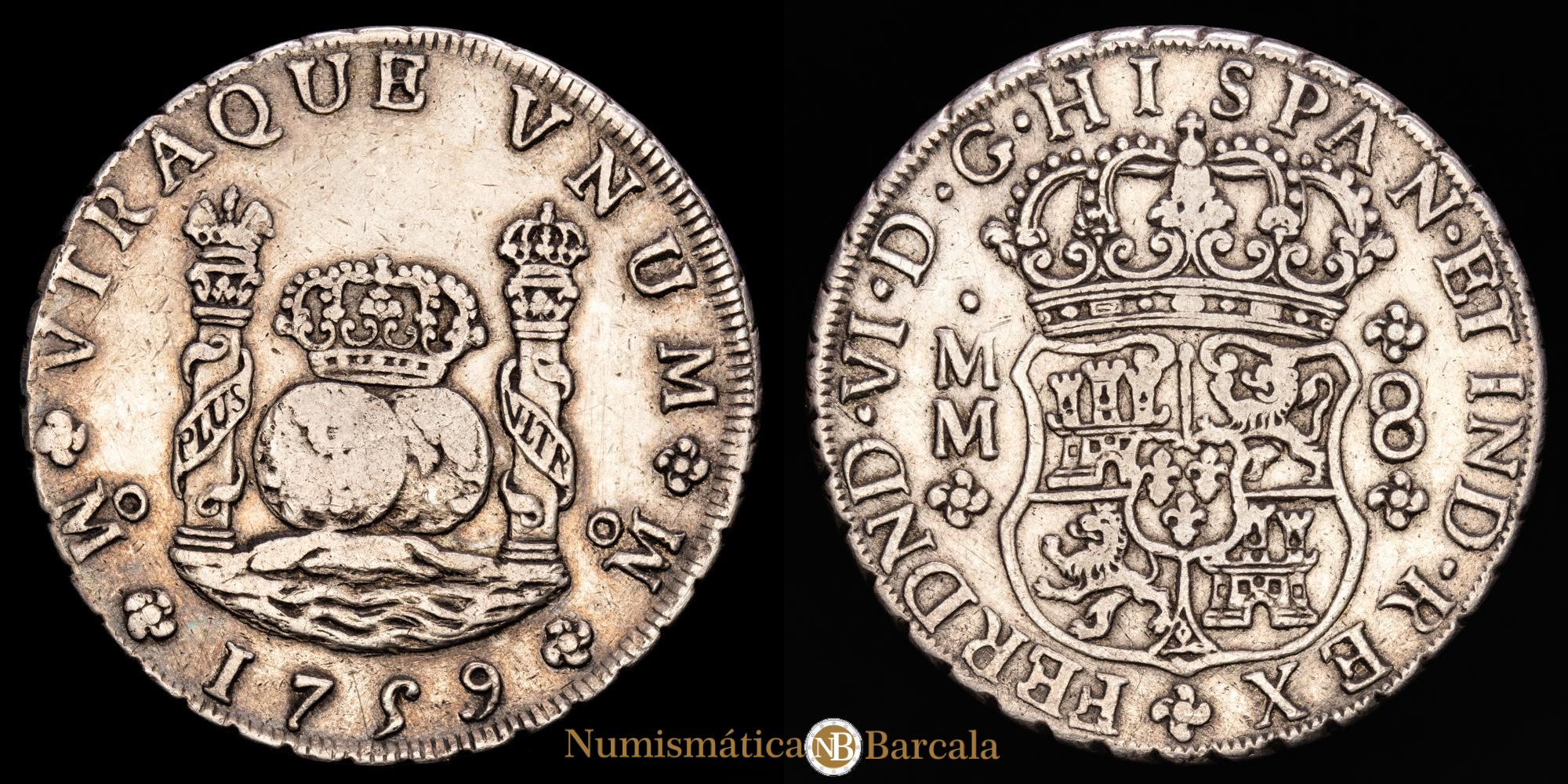 Numismática Barcala > Productos > Monarquia Española > Borbones > 1746-1759 Fernando VI > Fernando VI. 8 Reales. (26,81g.). Mexico. 1759. Ensayador MM. AC-495. VF.