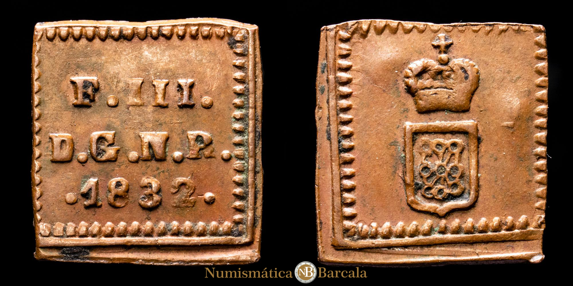 Fernando VII. 1/2 Maravedí. (1,01 g.). Pamplona. 1832. AC-30. EBC-. Rara así