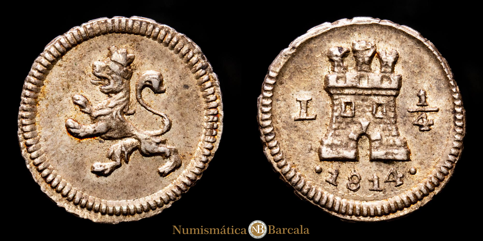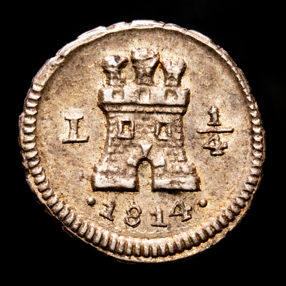 Numismática Barcala > Productos > Monarquia Española > Borbones > 1808-1833 Fernando VII > Fernando VII. 1/4 Real. (0,82 g.). Lima. 1814. Aureo y Calicó-265. EBC+ . Rara. Buen ejemplar.
