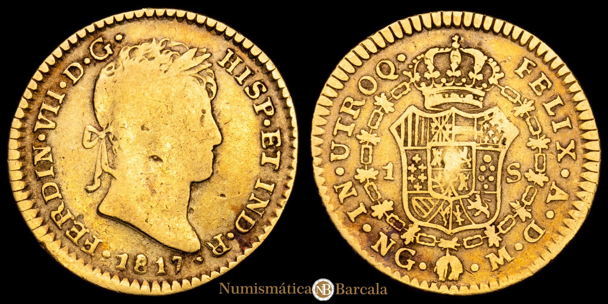 Fernando VII. 1 Escudo. (3,25 g.). Nueva Guatemala. 1817. Ensayador M. AC-1495. MBC. Rara