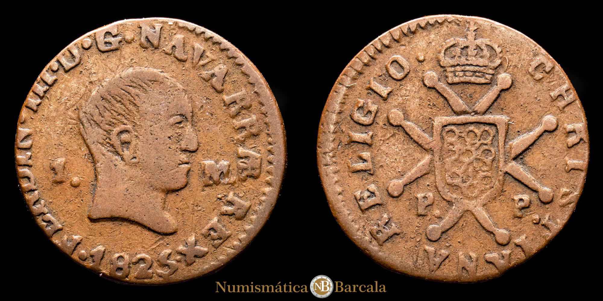 Fernando VII. 1 Maravedí. (1,97 g.). Pamplona. 1825. AC-36. MBC.