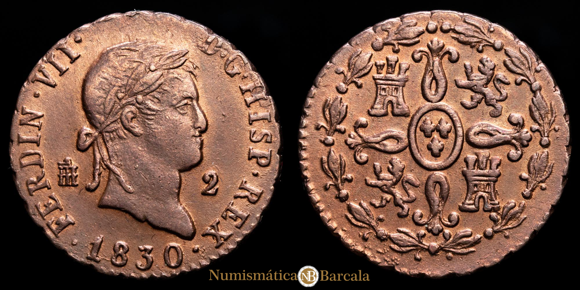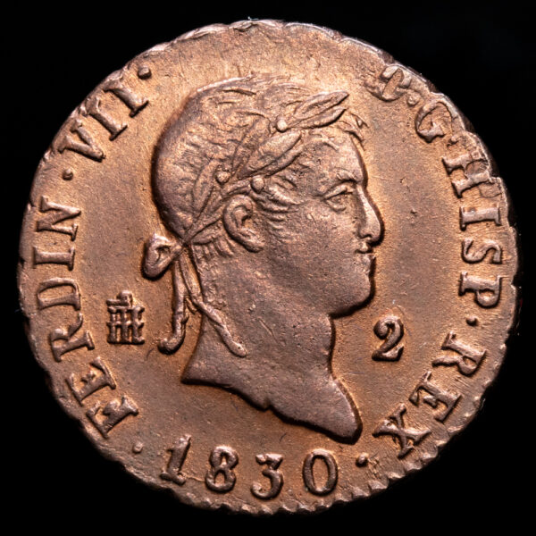 Numismática Barcala > Productos > Monarquia Española > Borbones > 1808-1833 Fernando VII > Fernando VII. 2 Maravedís. (2,37g.). Segovia. 1830. AC-152. SC. Brillo original.