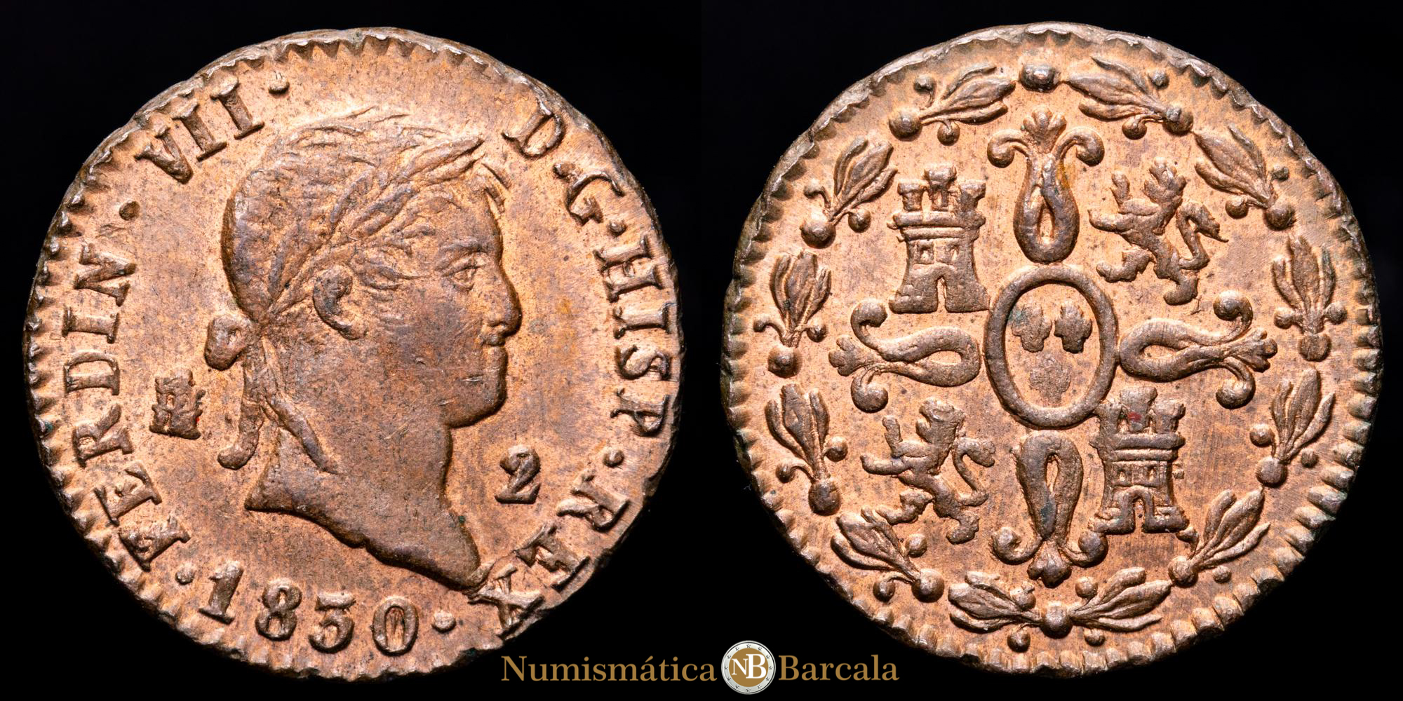 Numismática Barcala > Productos > Monarquia Española > Borbones > 1808-1833 Fernando VII > Fernando VII. 2 Maravedís. (2,54 g.). Segovia. 1830. AC-152. SC-.