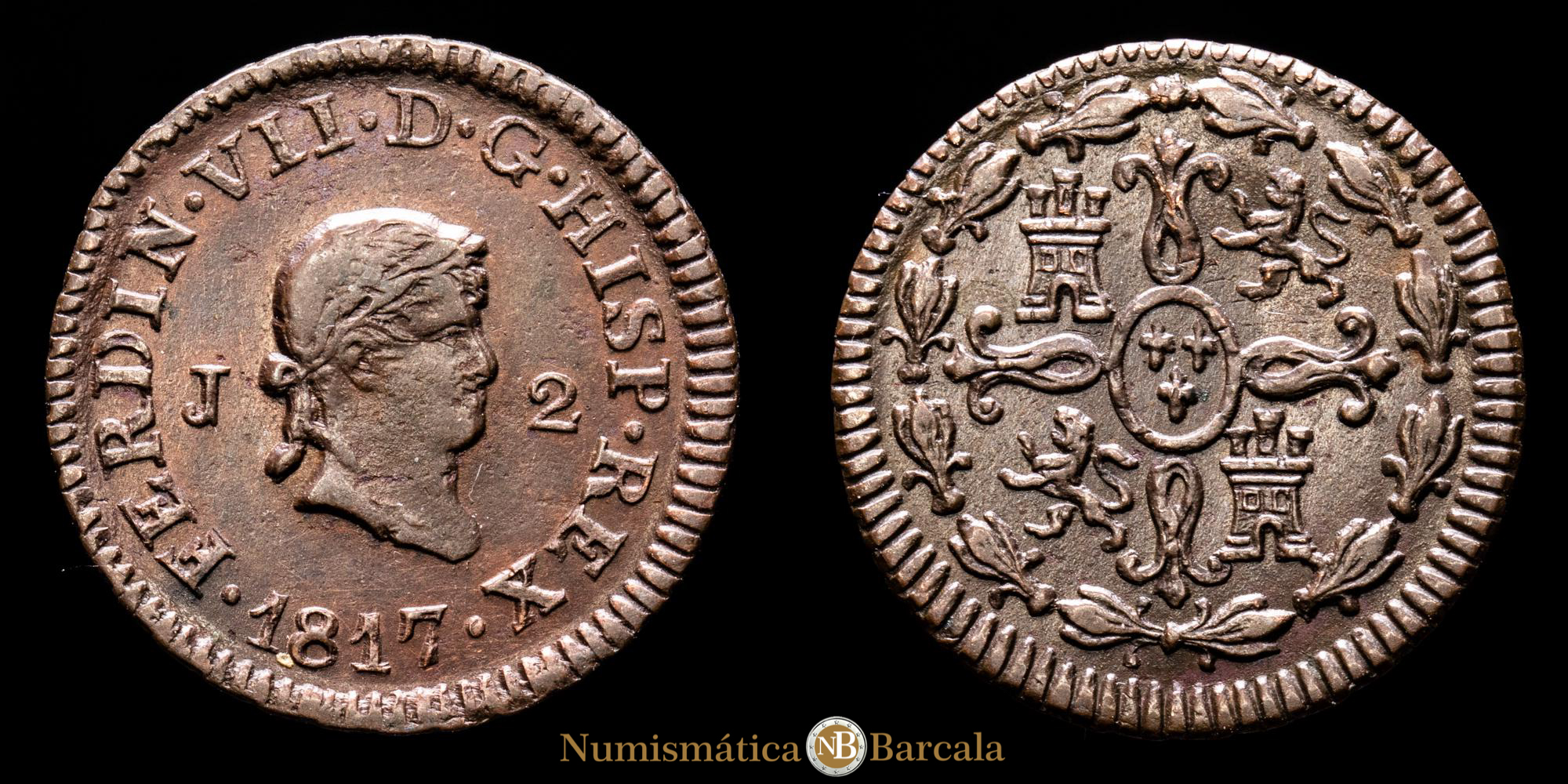 Numismática Barcala > Productos > Monarquia Española > Borbones > 1808-1833 Fernando VII > Fernando VII. 2 Maravedis. (2,62 g.). Jubia. 1817. AC-130. EBC. Rara en esta conservación .