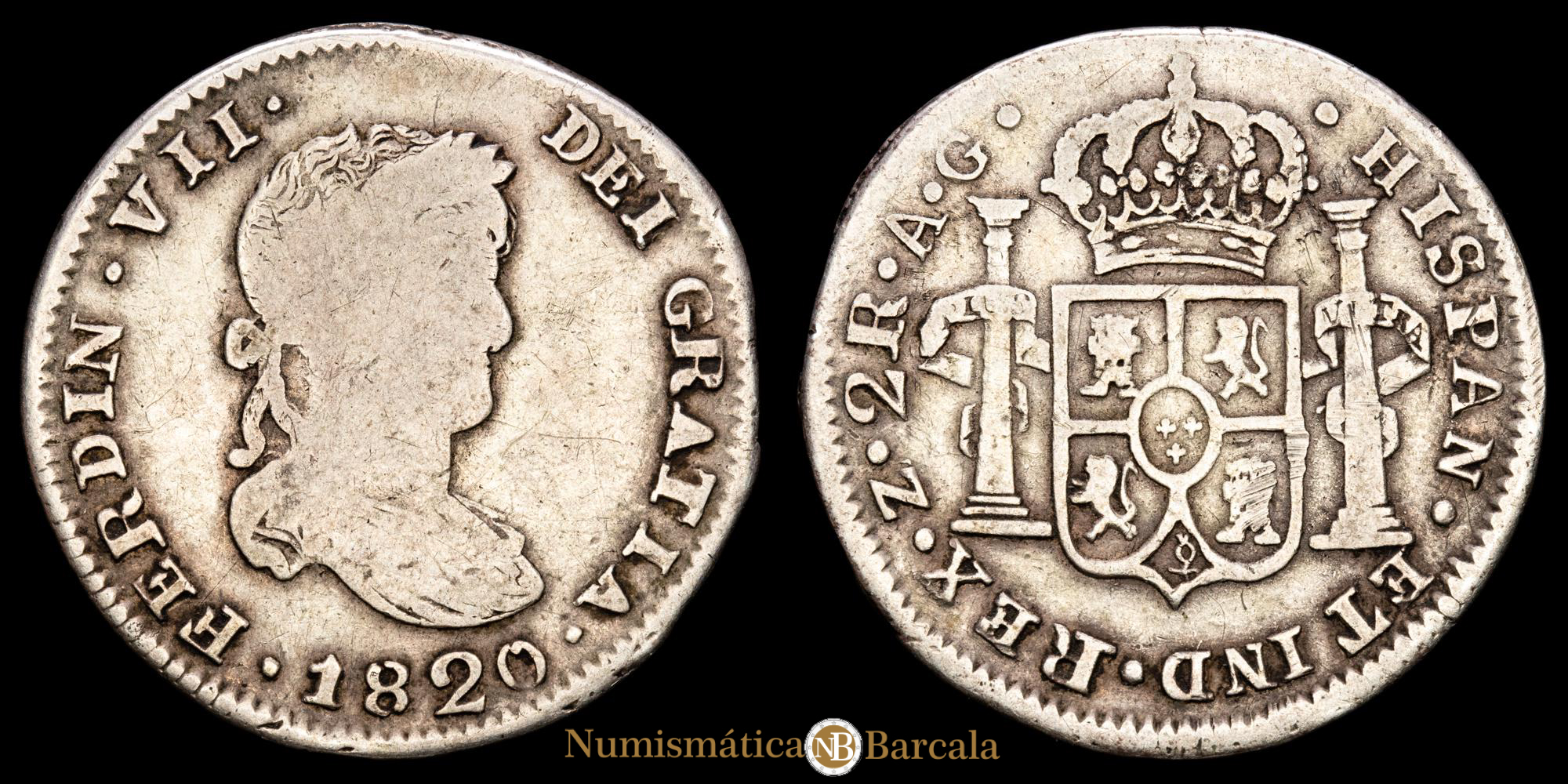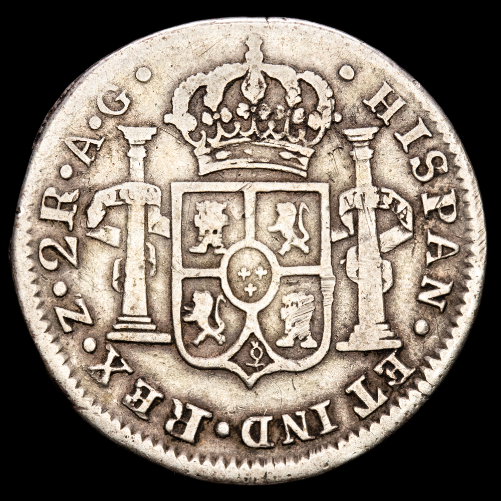 Numismática Barcala > Productos > Monarquia Española > Borbones > 1808-1833 Fernando VII > Fernando VII. 2 Reales. (5,32g.). Zacatecas. 1820. Ensayador A·G. AC-1011. MBC-.