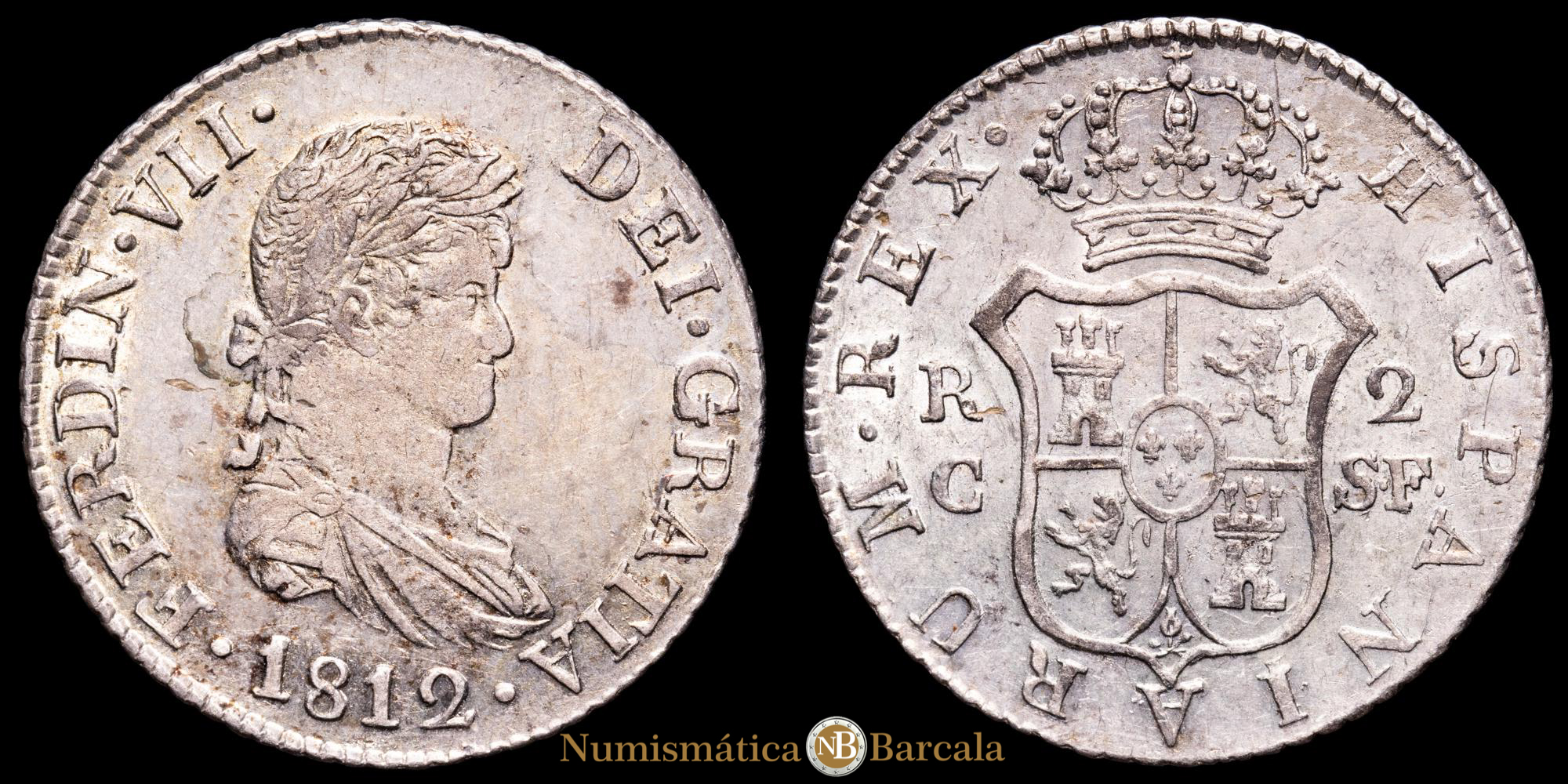 Numismática Barcala > Productos > Monarquia Española > Borbones > 1808-1833 Fernando VII > Fernando VII. 2 Reales. (5,66 g.). Cataluña. 1812. Ensayador S·F. AC-765. SC-. Brillo original. **