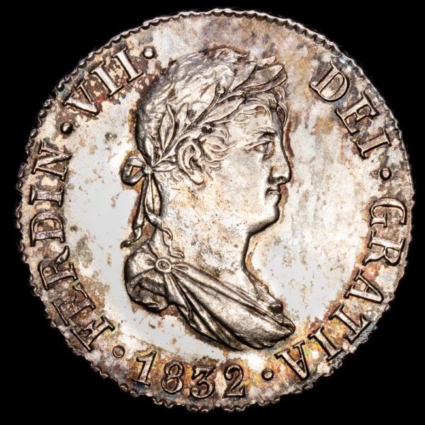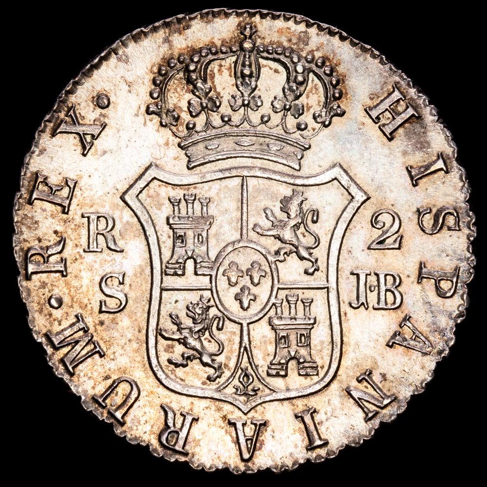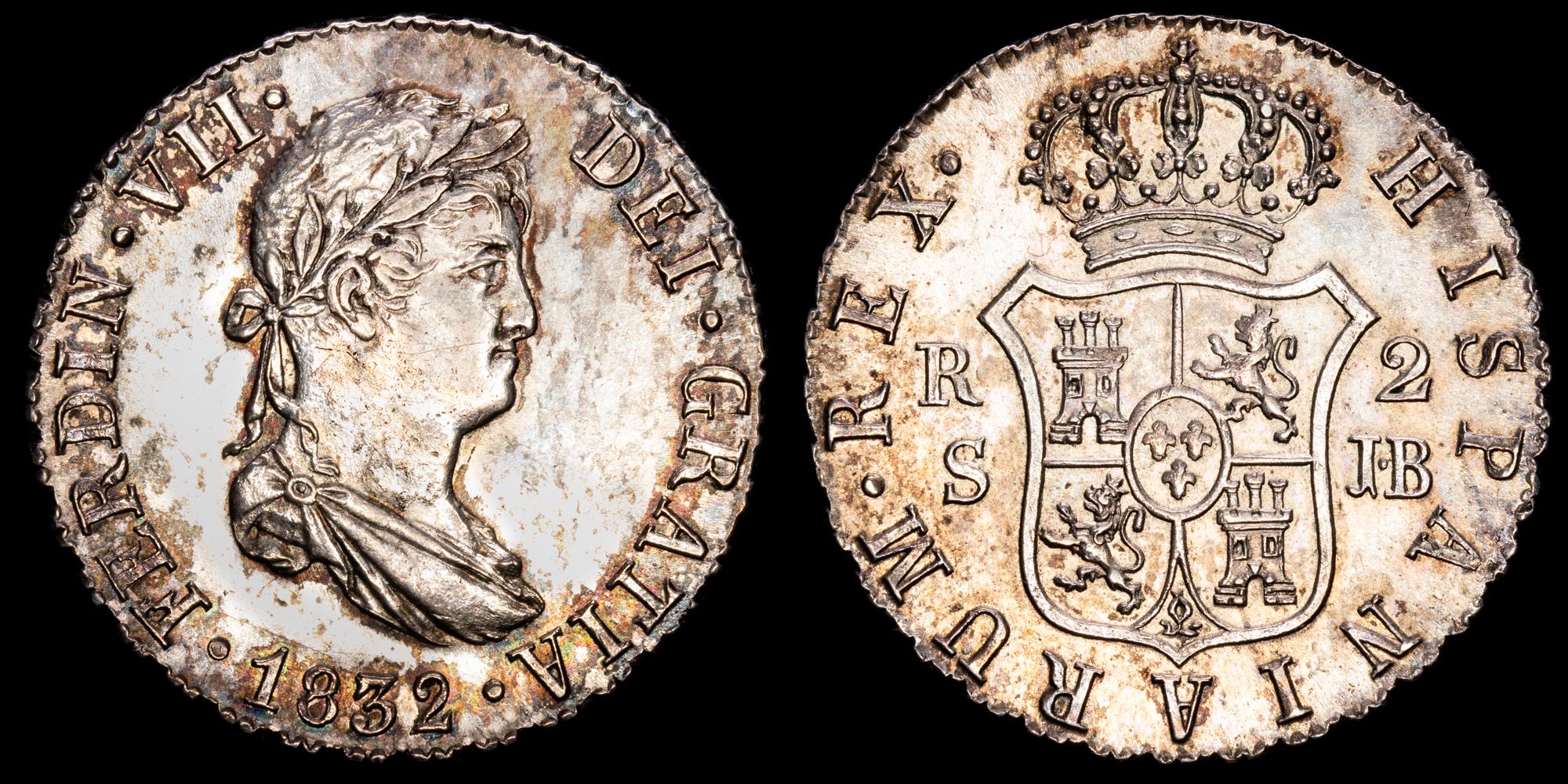 Numismática Barcala > Productos > Monarquia Española > Borbones > 1808-1833 Fernando VII > Fernando VII. 2 Reales ( 5,93 g.). 1832. Sevilla. Ensayador J.B. AC-1040. UNC-. Preciosa patina.