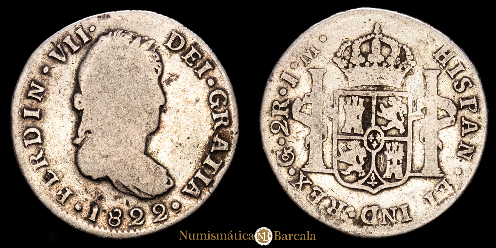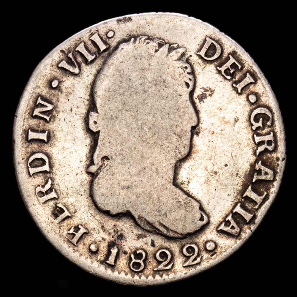 Fernando VII. 2 Reales. (6,4g.). Guanajuato. 1822. Ensayador J·M. AC-786. MBC-.