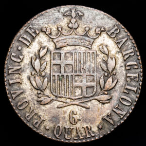 Fernando VII. 6 Cuartos de Galón. (13,56g.). Cataluña. 1823. CA-21. MBC.