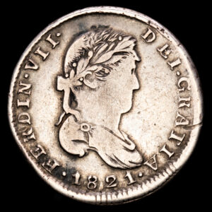 Fernando VII. 2 Reales. (6,52 g.). Zacatecas (México). 1821. Ensayador A·G. KM-93.4. MBC. Escasa