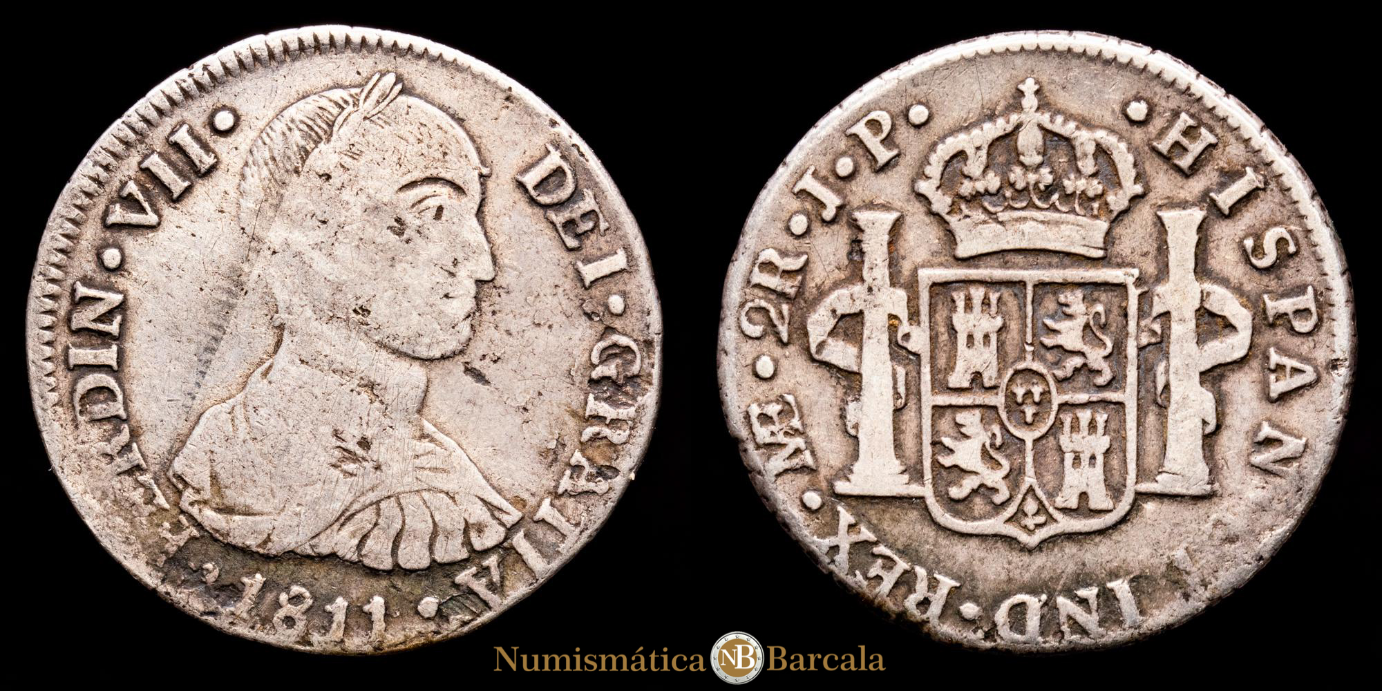 Numismática Barcala > Productos > Monarquia Española > Borbones > 1808-1833 Fernando VII > Fernando VII. 2 Reales. (6,51 g.). Lima. 1811. Ensayador J·P. Aureo y Calicó-810. MBC-. Rara.