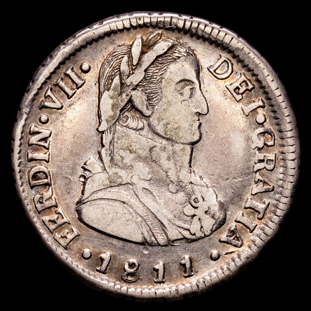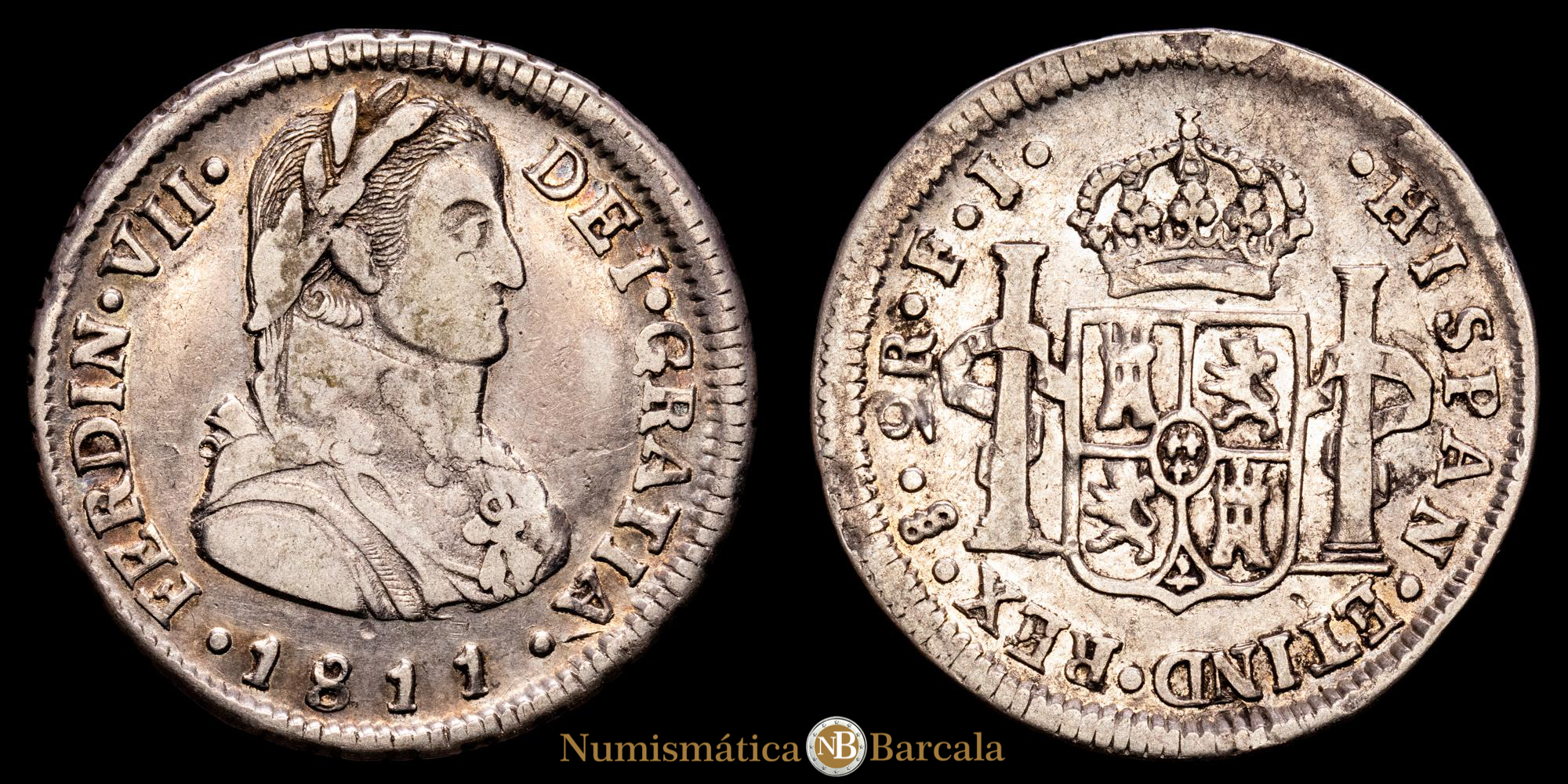 Numismática Barcala > Productos > Monarquia Española > Borbones > 1808-1833 Fernando VII > Fernando VII. 2 Reales. (6,75 g.). Santiago. 1811. Ensayador F·J. Aureo y Calicó-941. MBC. Escasa