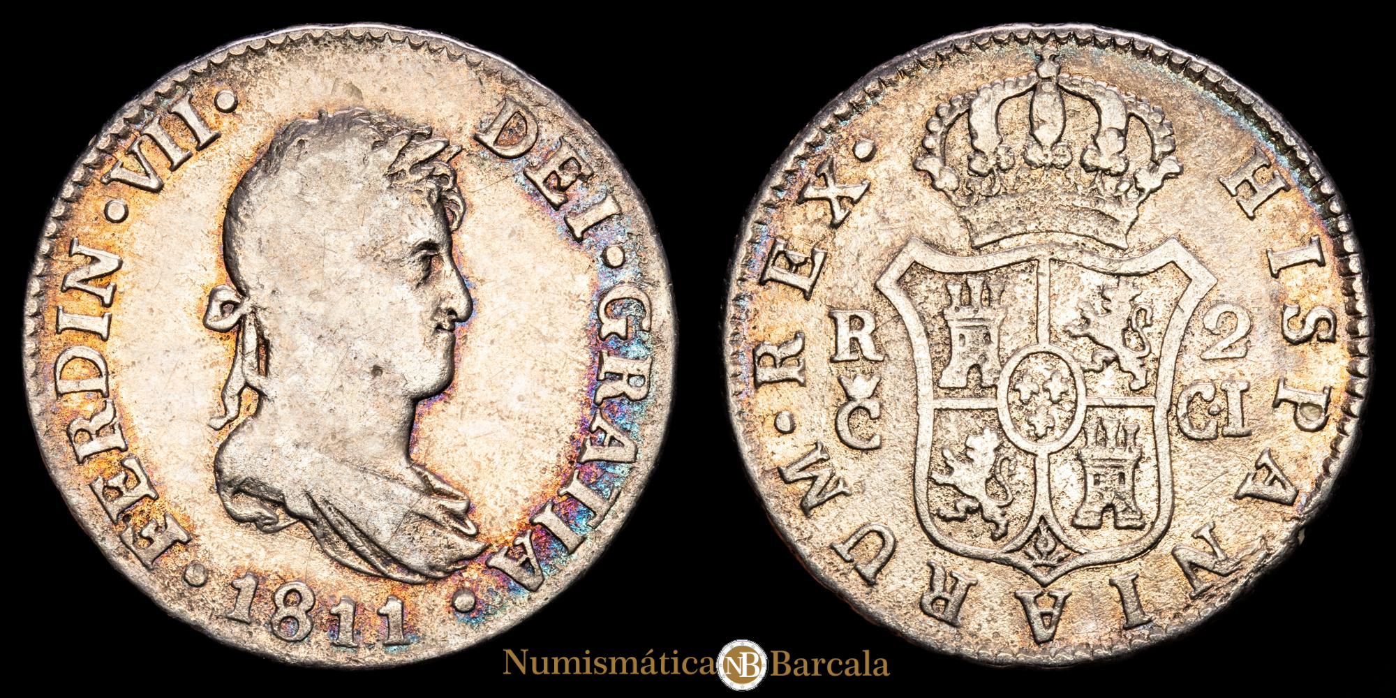 Numismática Barcala > Productos > Monarquia Española > Borbones > 1808-1833 Fernando VII > Fernando VII. 2 Reales. (g.). Cádiz. 1811. Ensayador C·I. CAY-15411. MBC.