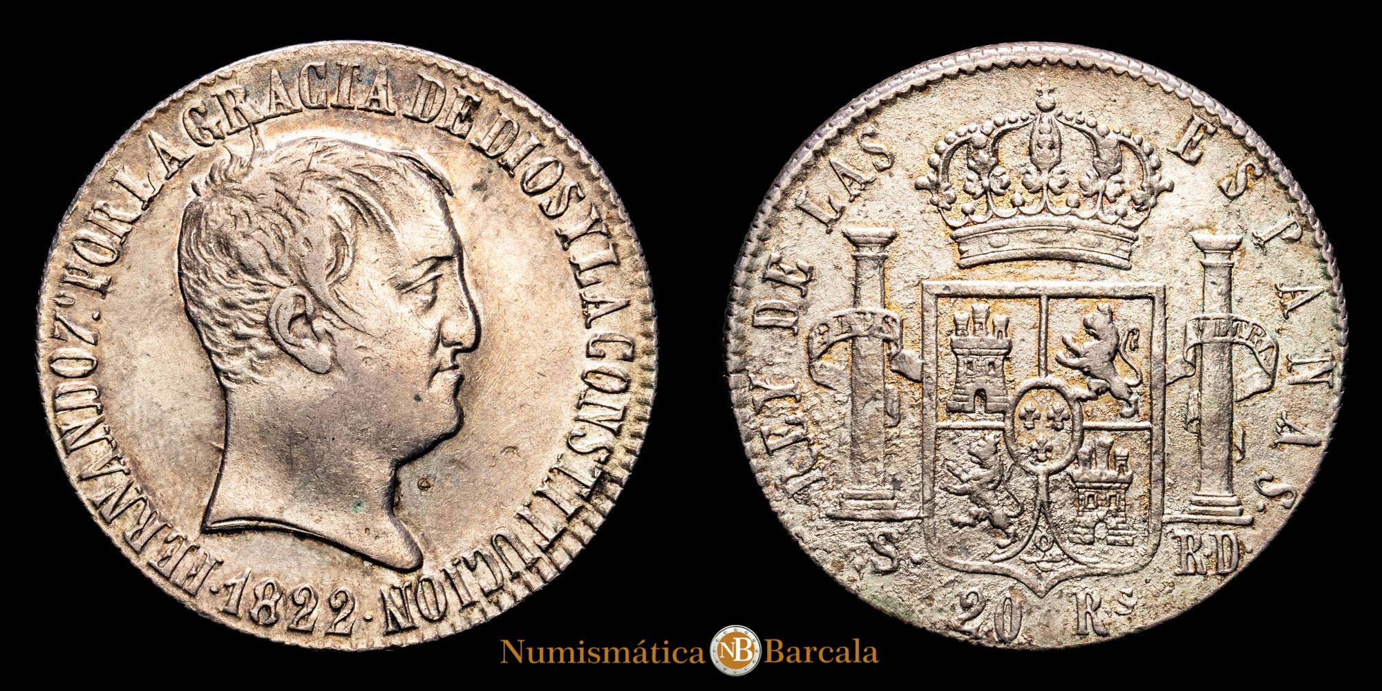 Numismática Barcala > Productos > Monarquia Española > Borbones > 1808-1833 Fernando VII > Fernando VII. 20 Reales (27,07 g.). Sevilla. 1822. Ensayador R·D.  Aureo y Calicó  – 1422. MBC+.