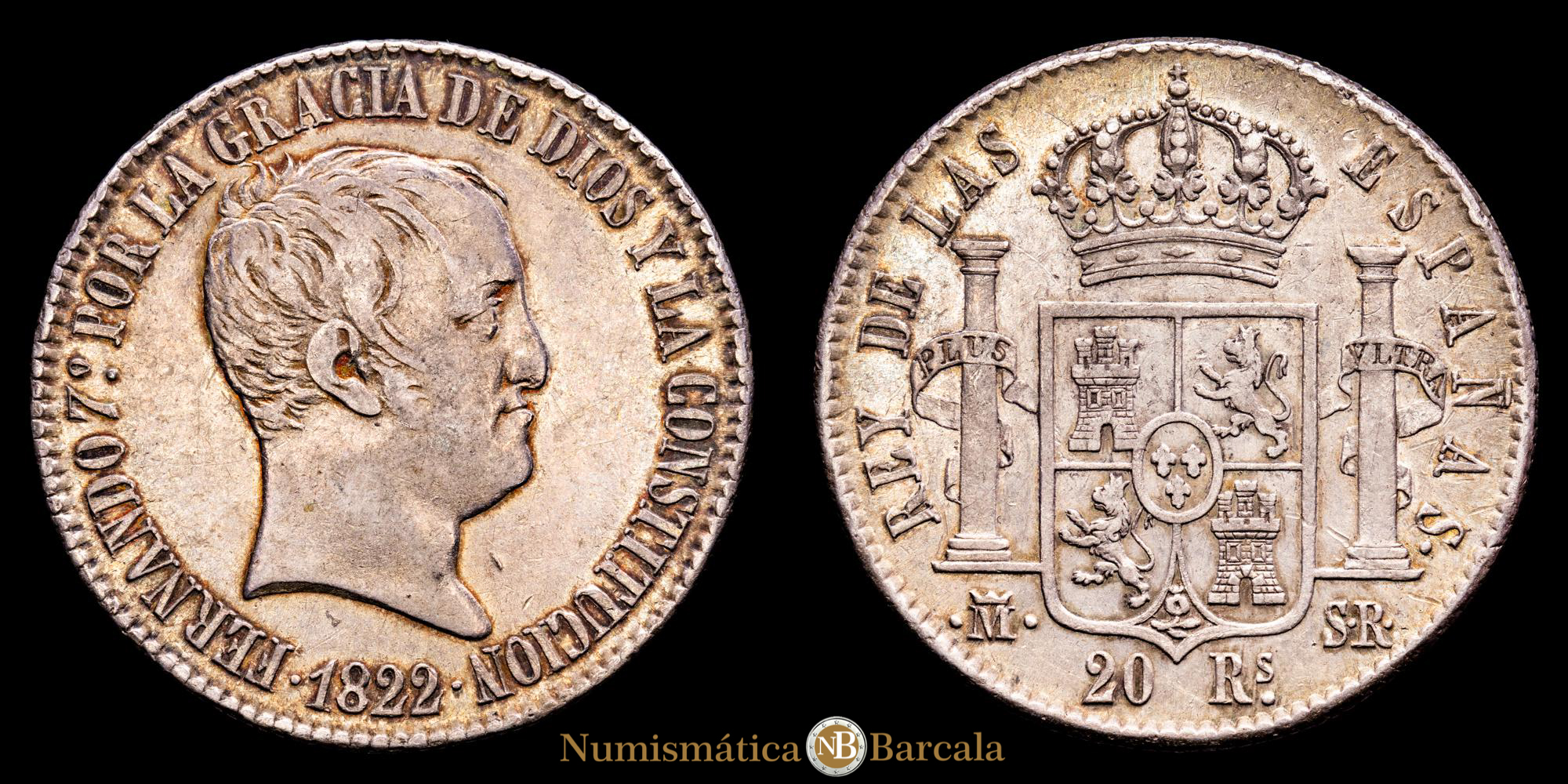 Numismática Barcala > Productos > Monarquia Española > Borbones > 1808-1833 Fernando VII > Fernando VII. 20 Reales. (27,22 g.). Madrid. 1822. Ensayador S·R. Aureo y Calicó – 1282. MBC+.
