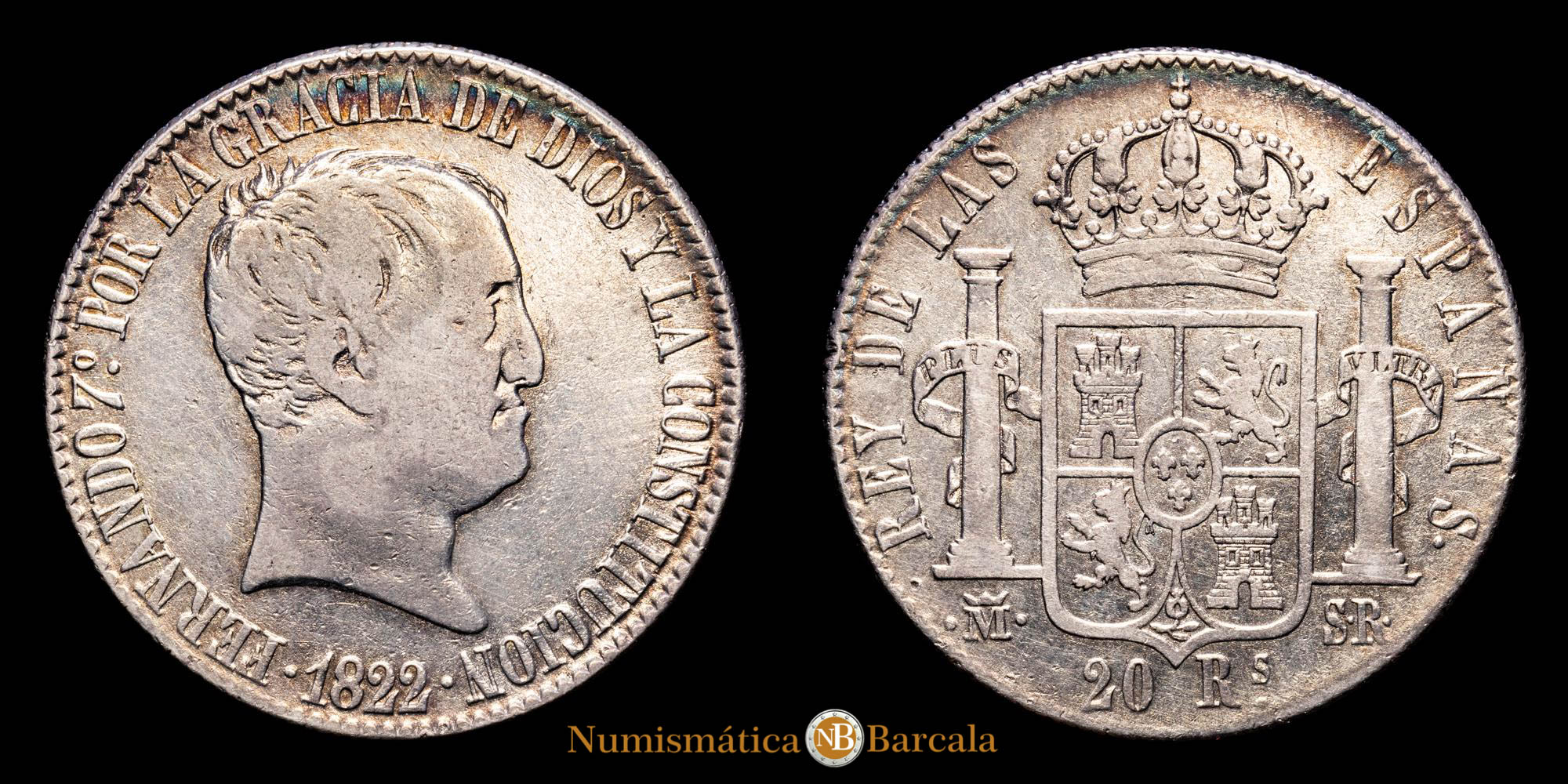 Numismática Barcala > Productos > Monarquia Española > Borbones > 1808-1833 Fernando VII > Fernando VII. 20 Reales (6,71 g.). Madrid. 1822. Ensayador S·R.  Aureo y Calicó  – 1282. MBC.