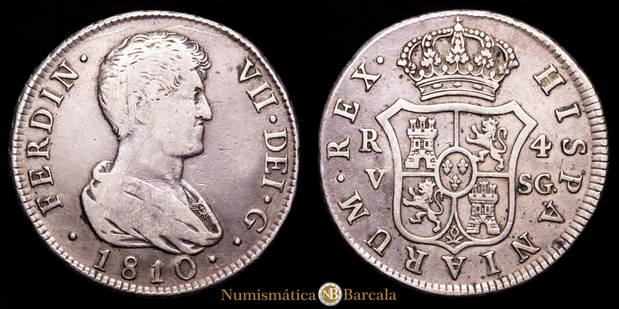 Numismática Barcala > Productos > Monarquia Española > Borbones > 1808-1833 Fernando VII > Fernando VII. 4 Reales. (13,1 g.). Valencia. 1810. Ensayador SG. AC-1143. MBC. Escasa