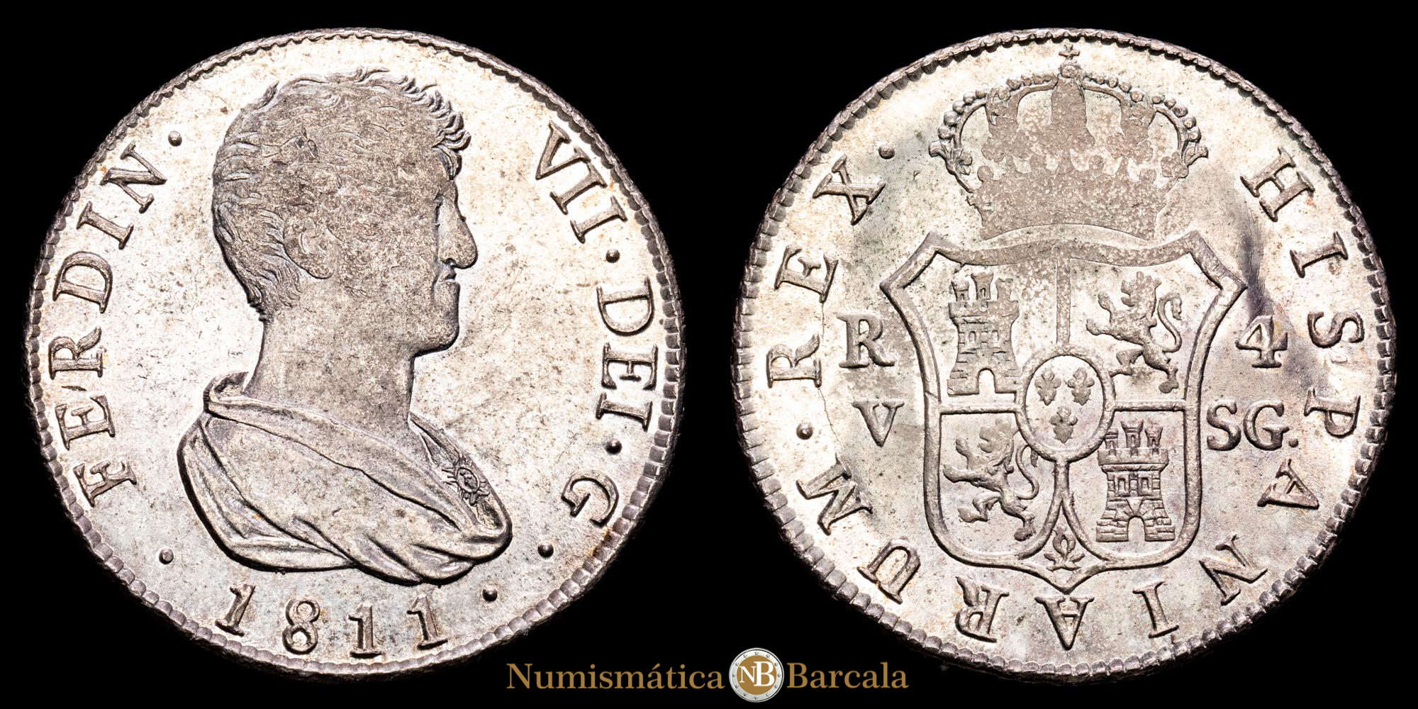 Numismática Barcala > Productos > Monarquia Española > Borbones > 1808-1833 Fernando VII > Fernando VII. 4 Reales. (13,53 g.). Valencia. 1811. Ensayador S·G. Aureo y Calicó-1144. EBC+/SC-. Brillo original