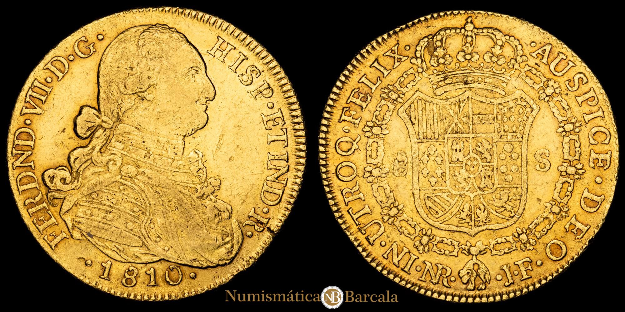 Numismática Barcala > Productos > Monarquia Española > Borbones > 1808-1833 Fernando VII > Fernando VII. 8 Escudos. (26,98 g.). Nuevo Reino (Colombia). 1810. Ensayador J·F. AC-1837. MBC+.