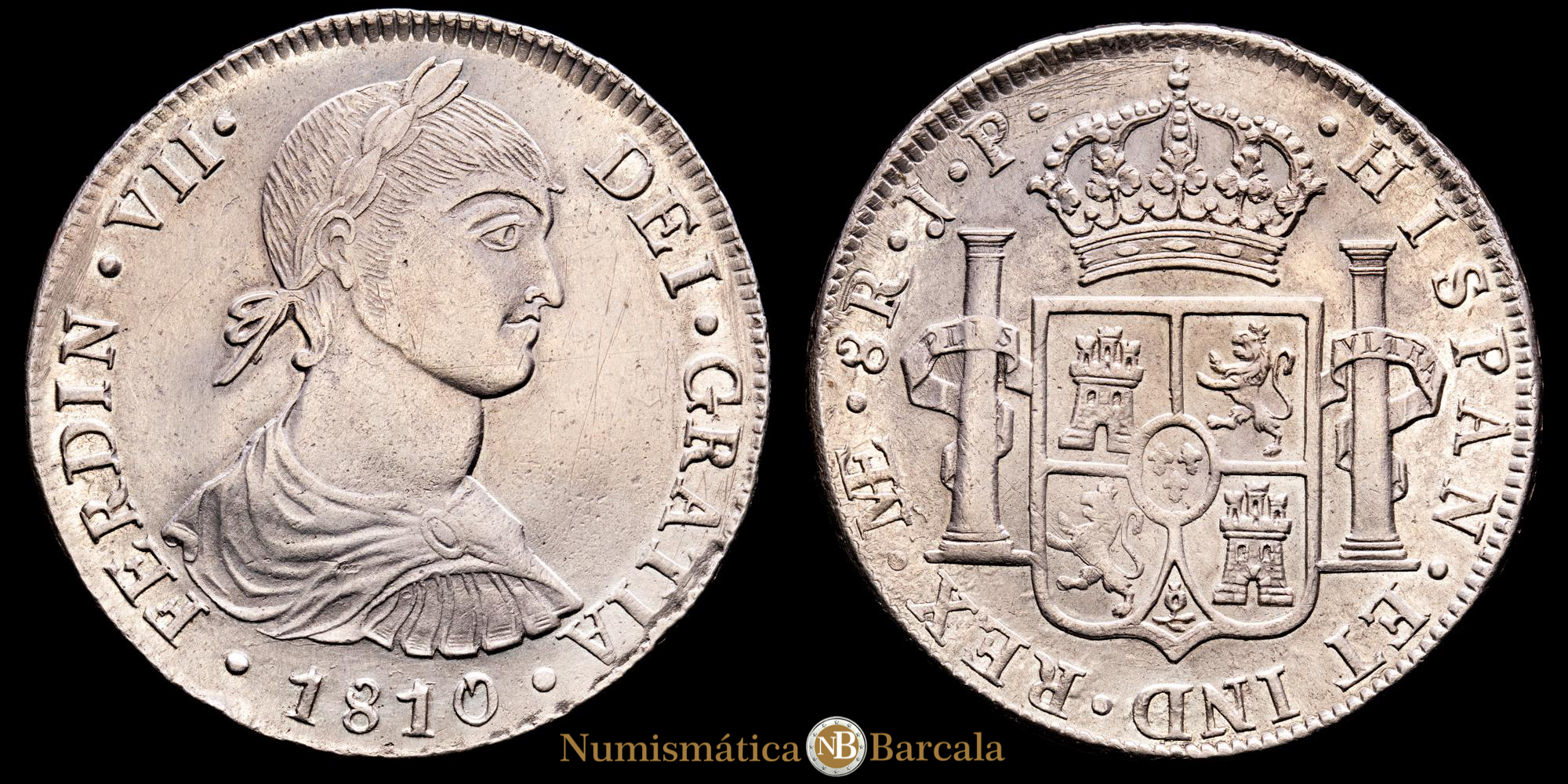 Numismática Barcala > Productos > Monarquia Española > Borbones > 1808-1833 Fernando VII > Fernando VII. 8 Reales. (26,38 g.). Lima. 1810. Ensayador J·P. Aureo y Calicó – 1241. EBC-. Busto indígena