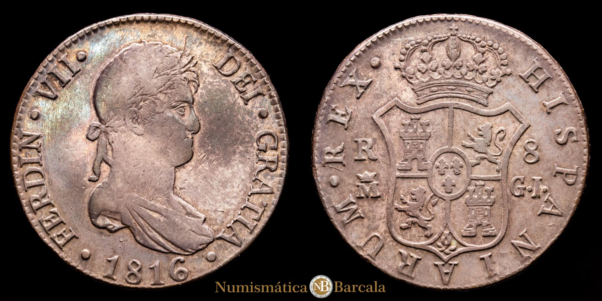 Numismática Barcala > Productos > Monarquia Española > Borbones > 1808-1833 Fernando VII > Fernando VII. 8 Reales. (26,68 g.). Madrid. 1816. Ensayador G·J. Aureo y Calicó-1270. MBC.