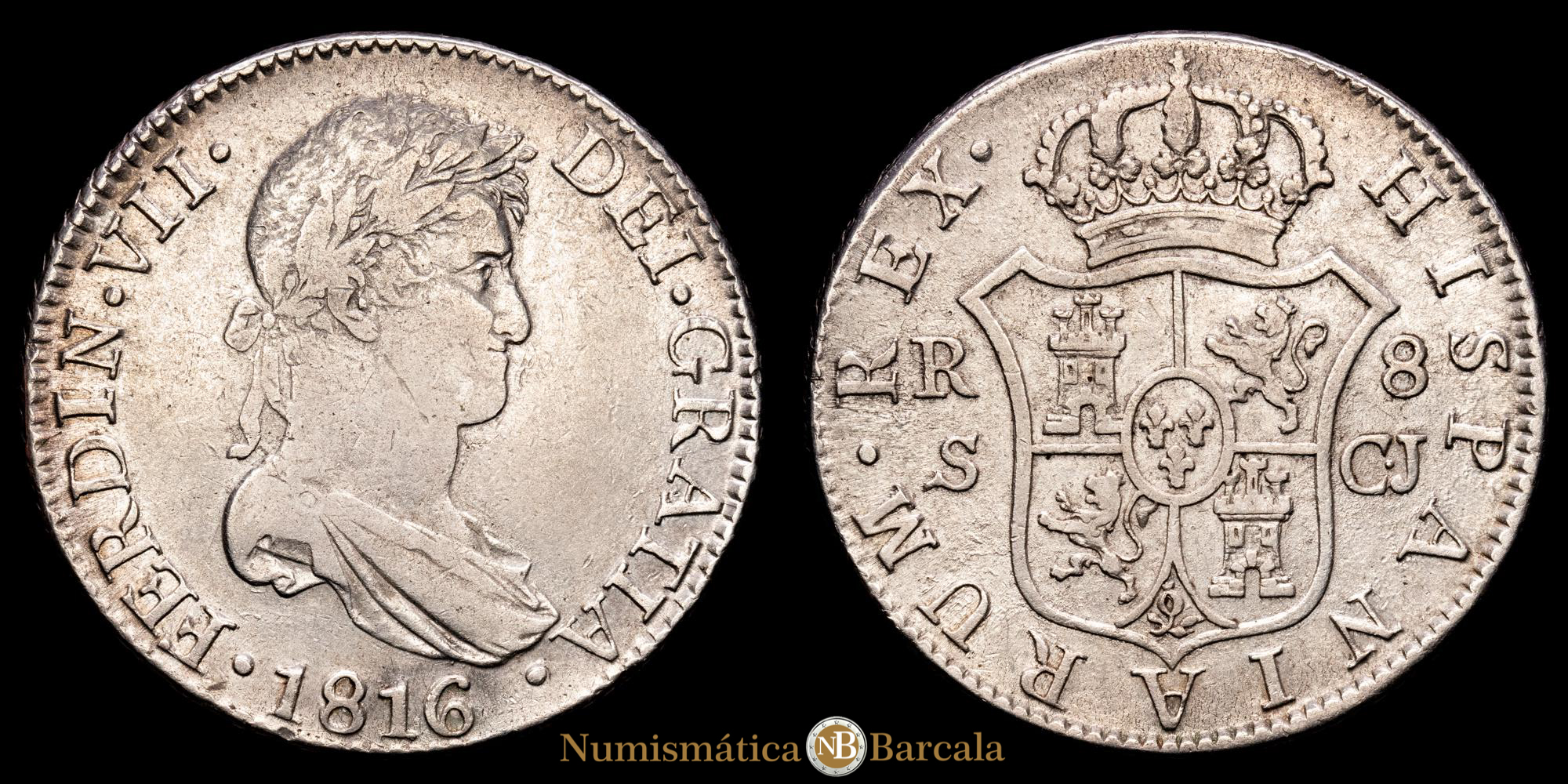 Numismática Barcala > Productos > Monarquia Española > Borbones > 1808-1833 Fernando VII > Fernando VII. 8 Reales. (26,75 g.). Sevilla. 1816. Ensayador C·J. Aureo y Calicó-1417. MBC.