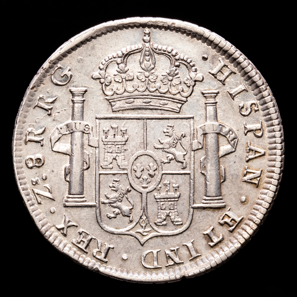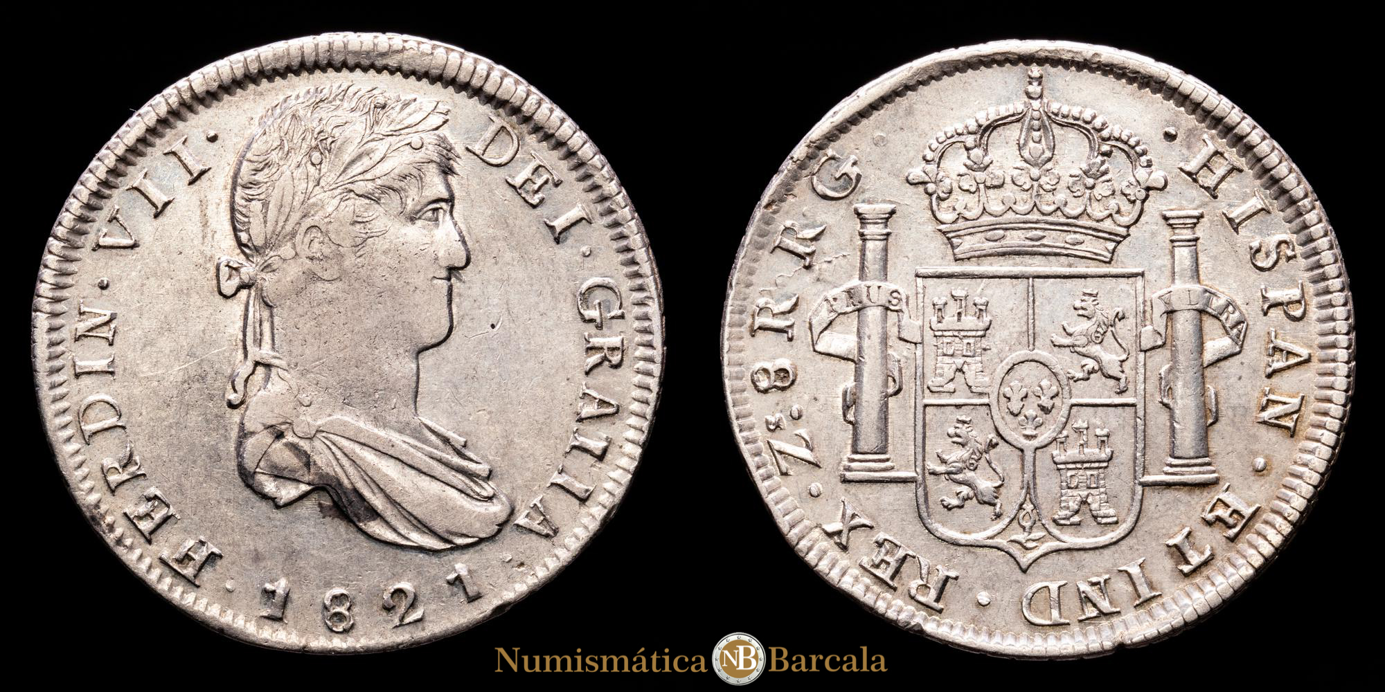 Numismática Barcala > Productos > Monarquia Española > Borbones > 1808-1833 Fernando VII > Fernando VII. 8 Reales. (26,75 g.). Zacatecas. 1821. Ensayador R·G. AC-1465. EBC. Restos de brillo original.