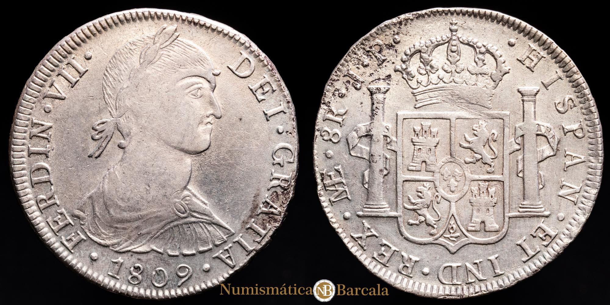 Fernando VII. 8 Reales. (26,78 g.). Lima (Perú). 1809. Ensayador J·P. AC-1240. EBC-.