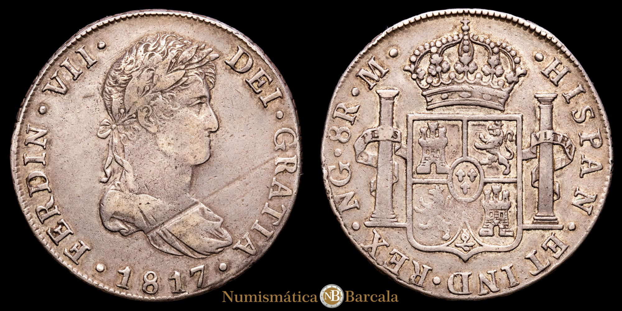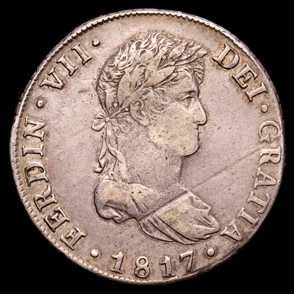 Numismática Barcala > Productos > Monarquia Española > Borbones > 1808-1833 Fernando VII > Fernando VII. 8 Reales. (26,82 g.). Guatemala. 1817. Ensayador M. Aureo y Calicó-1231. MBC+. Pátina. Rayas de ajuste en anverso.