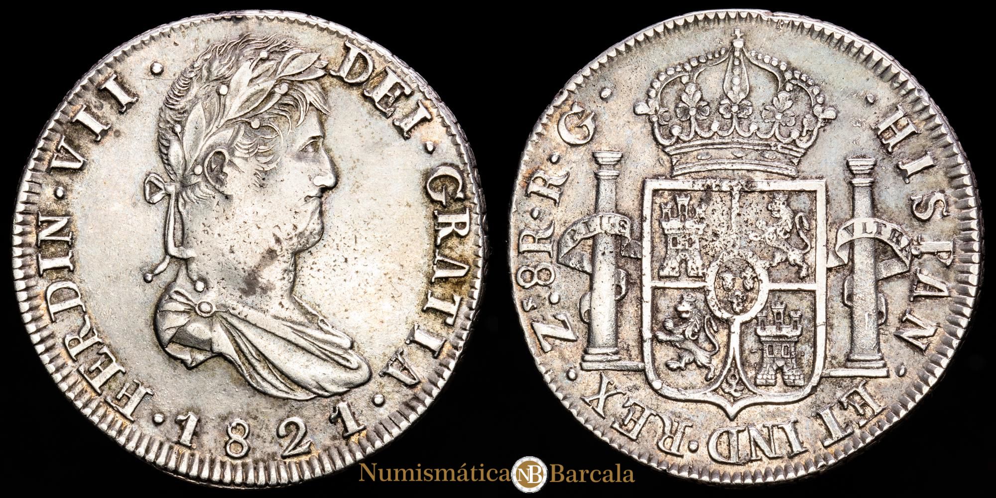 Numismática Barcala > Productos > Monarquia Española > Borbones > 1808-1833 Fernando VII > Fernando VII. 8 Reales. (26,92 g.). México. 1821. Ensayador R·G. AC-1465. MBC+.