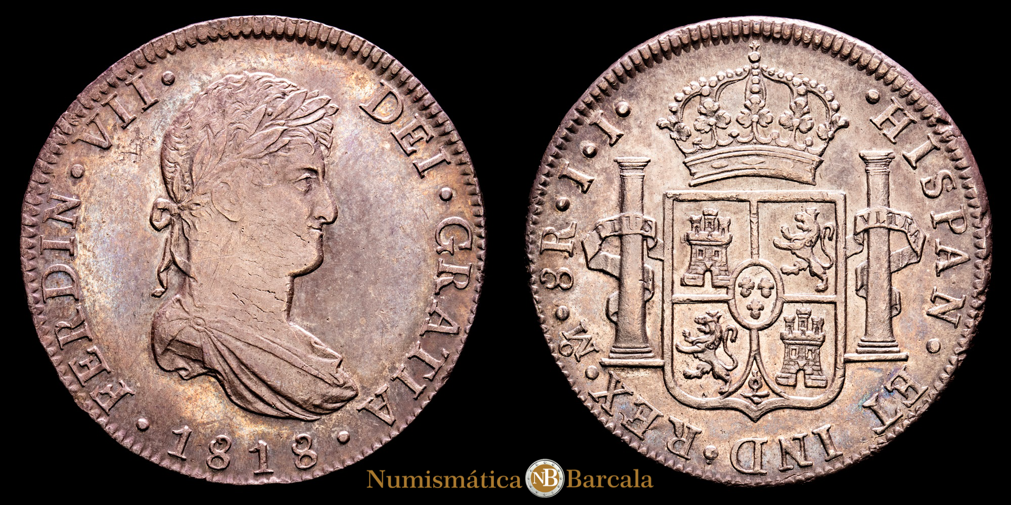 Numismática Barcala > Productos > Monarquia Española > Borbones > 1808-1833 Fernando VII > Fernando VII. 8 Reales (26,93 g.). 1818. México. Aureo y Calicó – 1333. Precioso color. EBC/EBC+
