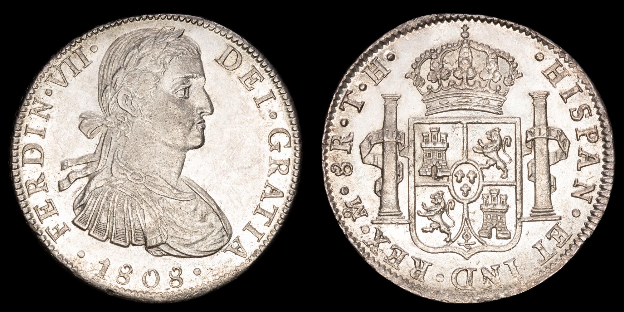 Numismática Barcala > Productos > Monarquia Española > Borbones > 1808-1833 Fernando VII > Fernando VII. 8 Reales (26,98 g.). 1808. México. Ensayador T·H. AC-1306. UNC. Brillo original.