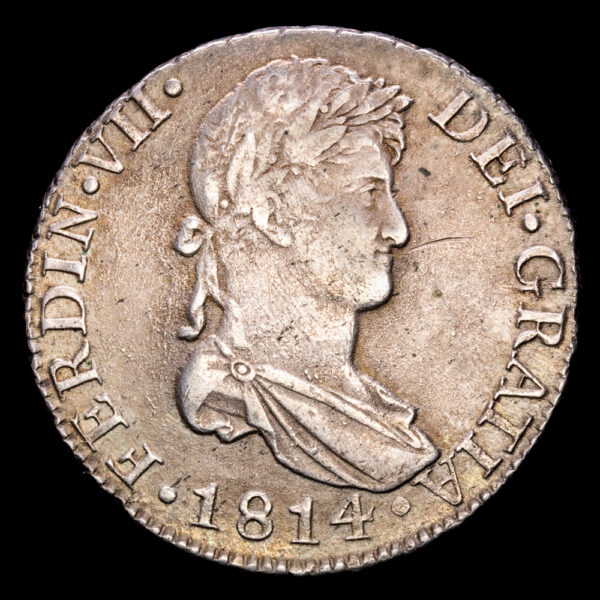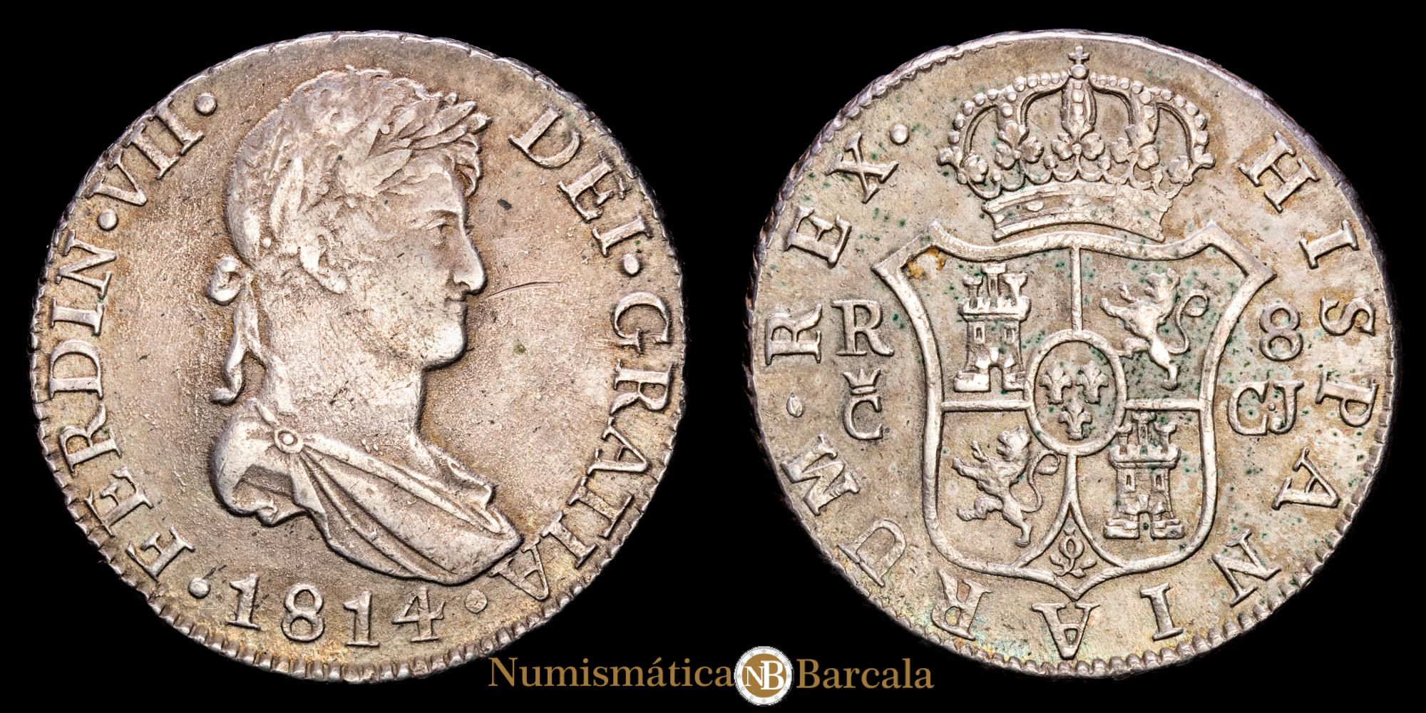 Fernando VII. 8 Reales (27,03 g.). 1814. Cádiz. Ensayador C.J. C-15921. MBC+
