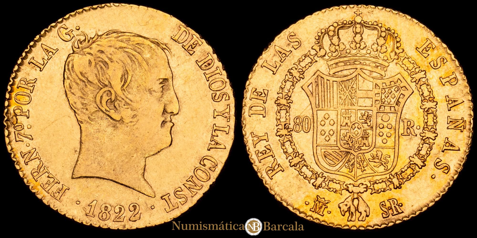 Numismática Barcala > Productos > Monarquia Española > Borbones > 1808-1833 Fernando VII > Fernando VII. 80 Reales. (6,74 g.). Madrid. 1822. Ensayador S·R. AC-1641. MBC+.
