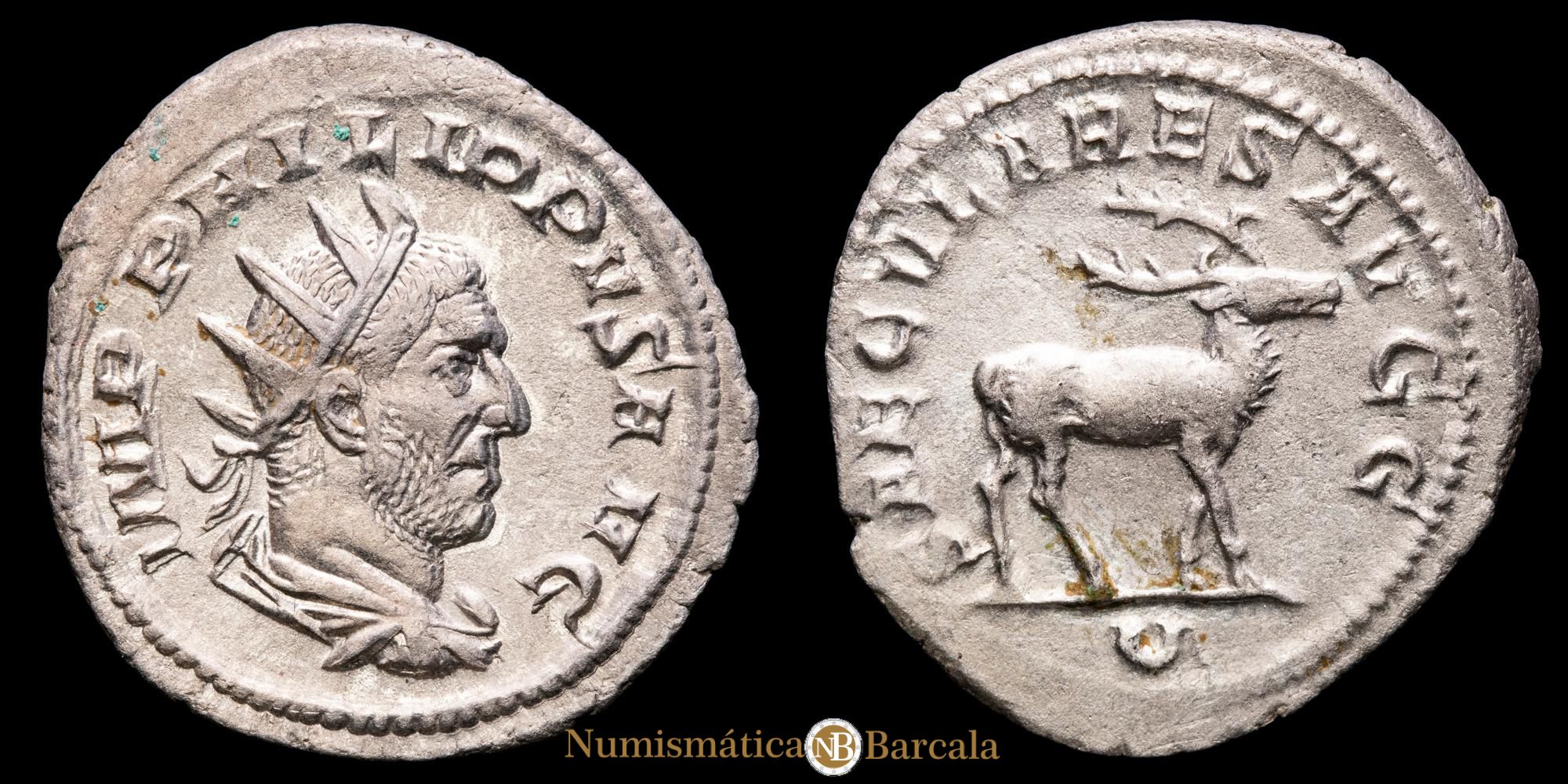 Numismática Barcala > Productos > Romanas > IMPERIO ROMANO > Alto Imperio > 238 - 255 d.C. > Filipo I > Filipo I. Antoniniano. (2,98 g.). Roma, 248 d.C. SAECVLARES AVGG / U. RIC IV 19. EBC+. Brillo original.