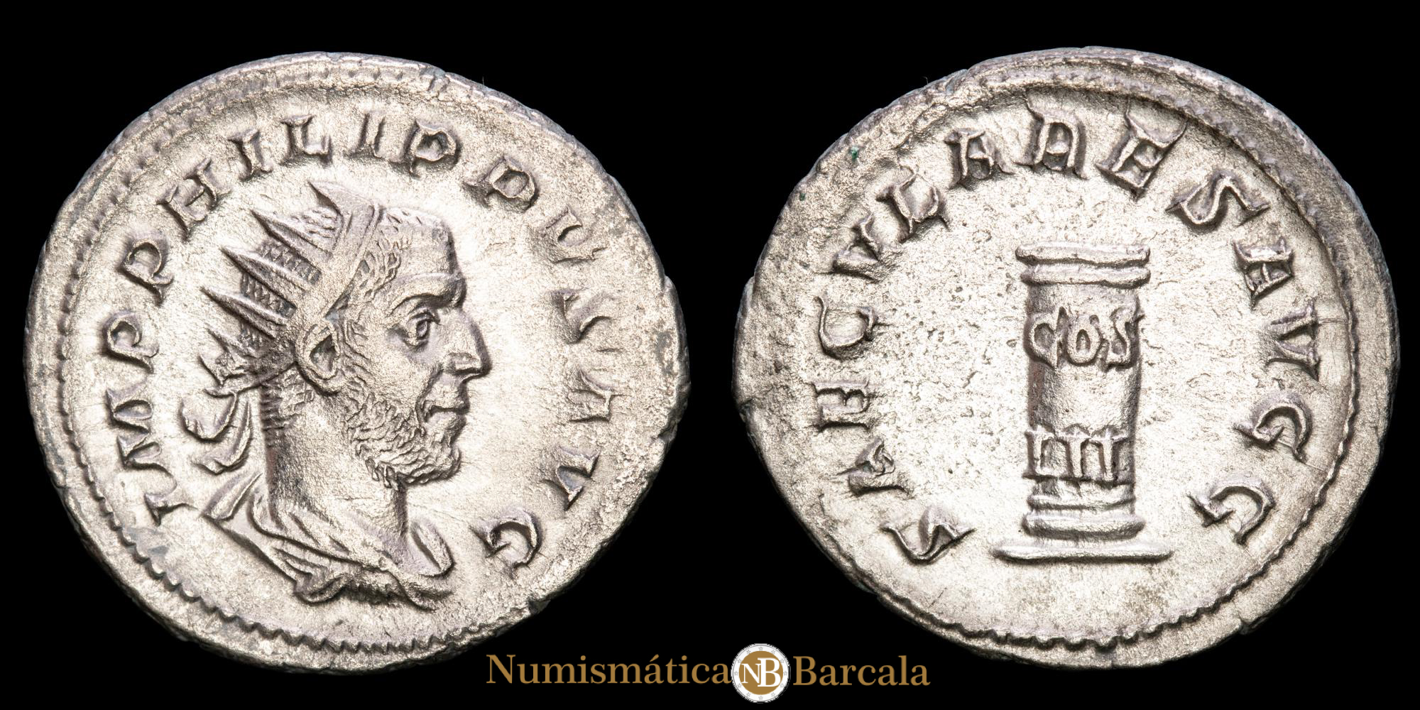 Numismática Barcala > Productos > Romanas > IMPERIO ROMANO > Filipo I. Antoniniano de plata (4,02 g.). Roma, 248 a.C. SAECVLARES AVGG / COS III. RIC IV, 3. EBC