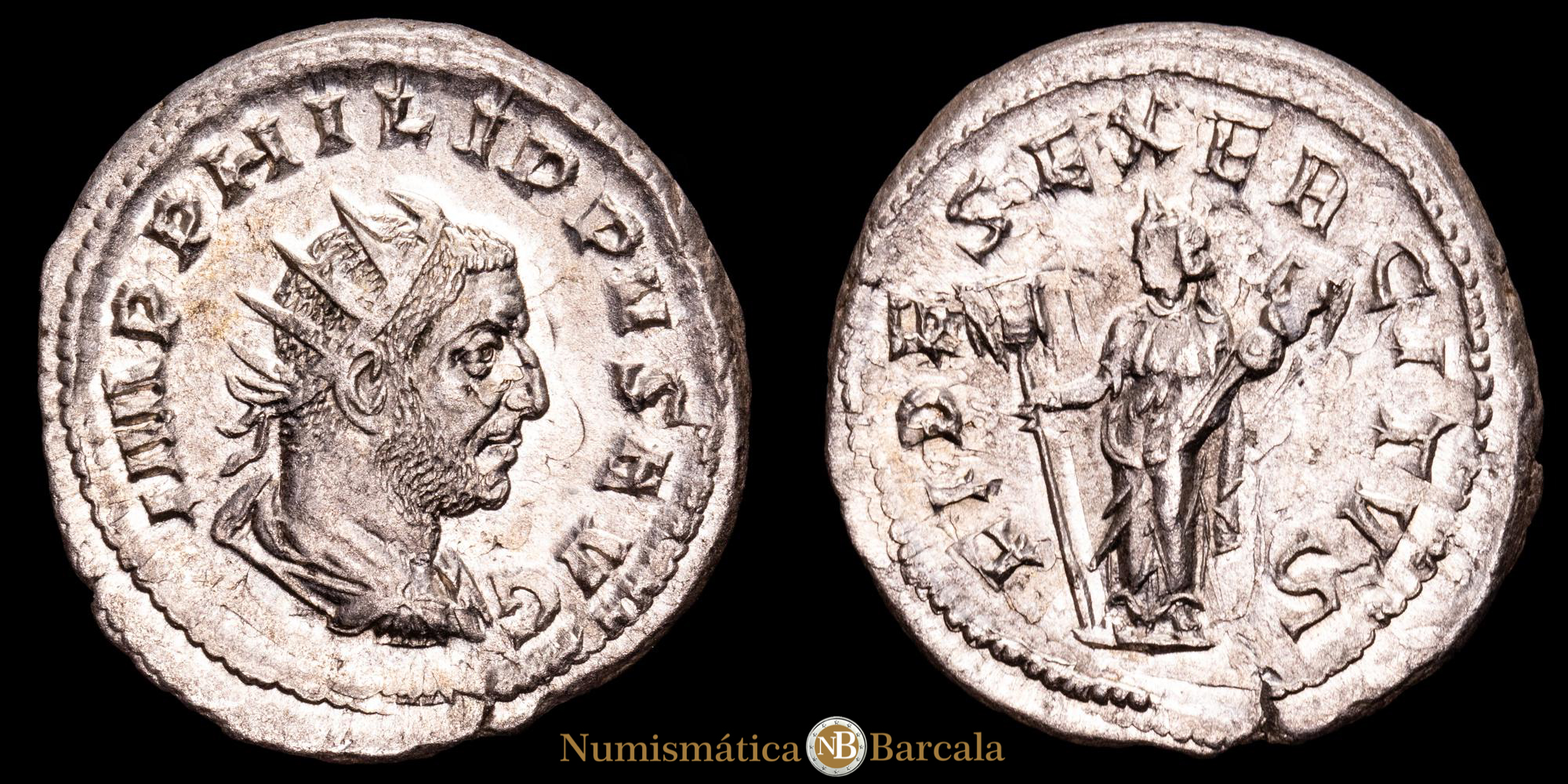 Numismática Barcala > Productos > Romanas > IMPERIO ROMANO > Alto Imperio > 238 - 255 d.C. > Filipo I > Filipo I. Antonininano. (5,92 g.). Roma. (244-249 d.C.). RIC-61. EBC+. R: FIDES EXERCITVS. Restos de brillo original.