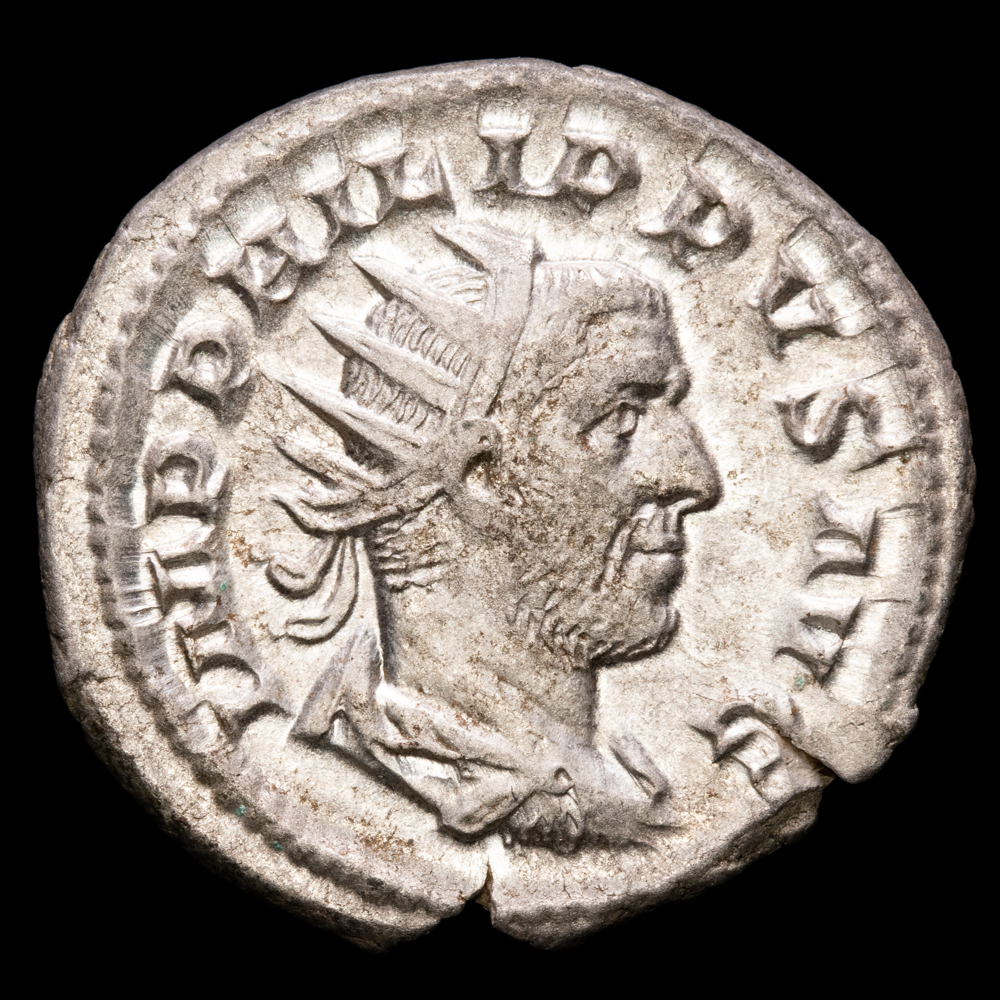 Filipo I “El Árabe”. Antoniniano de plata (4,34 g.). 244-249 d.C. SAECVLARES AVGG. RIC-12. VF+. Restos de brillo original.