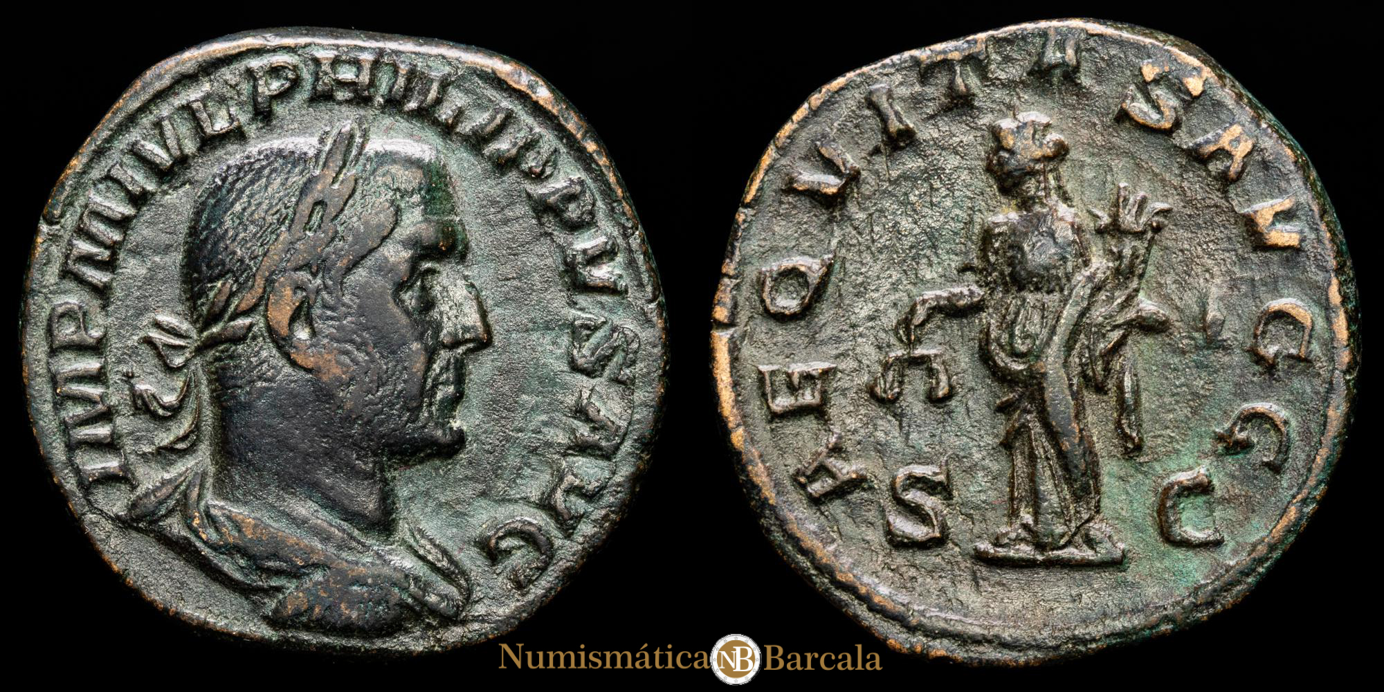 Numismática Barcala > Productos > Romanas > IMPERIO ROMANO > Alto Imperio > 238 - 255 d.C. > Filipo I > Filipo I. Sestercio. (19,34g.). Roma. 244-249 d.C. RIC-IV-166A. VF+. IMP M IVL PHILIPPVS AVG / AEQVITAS AVG