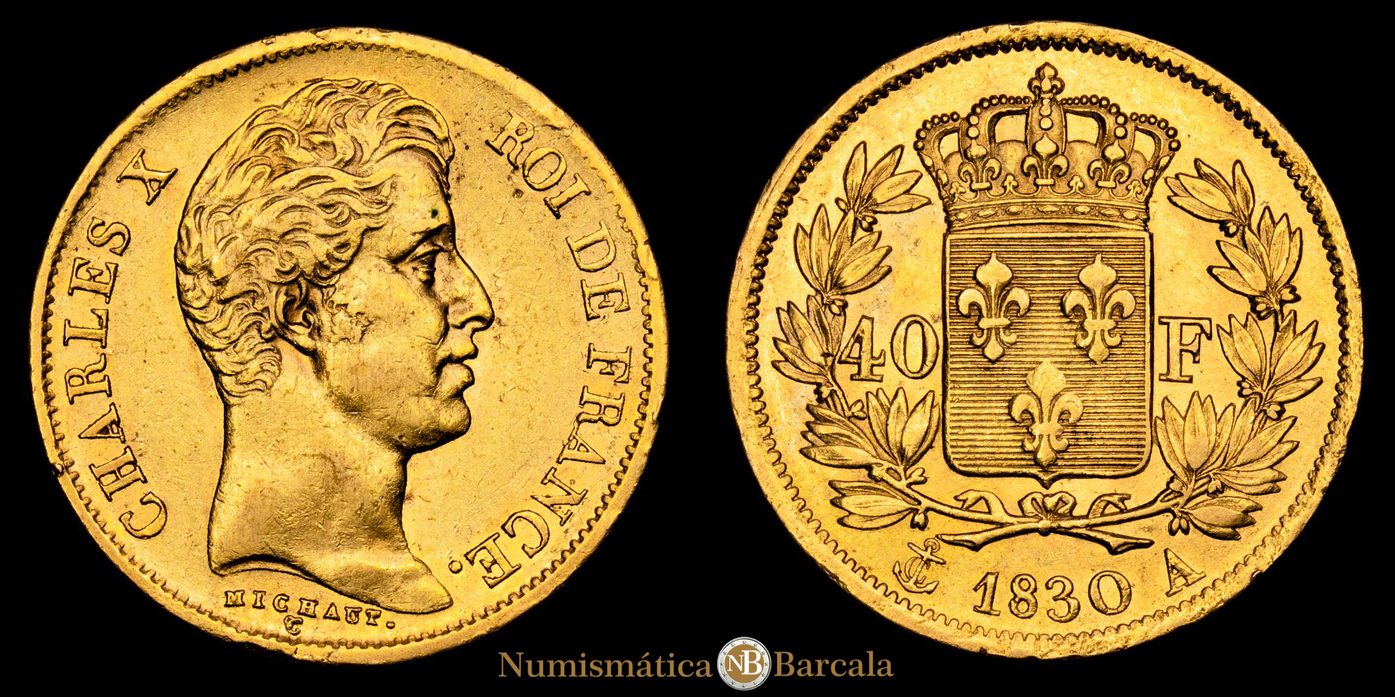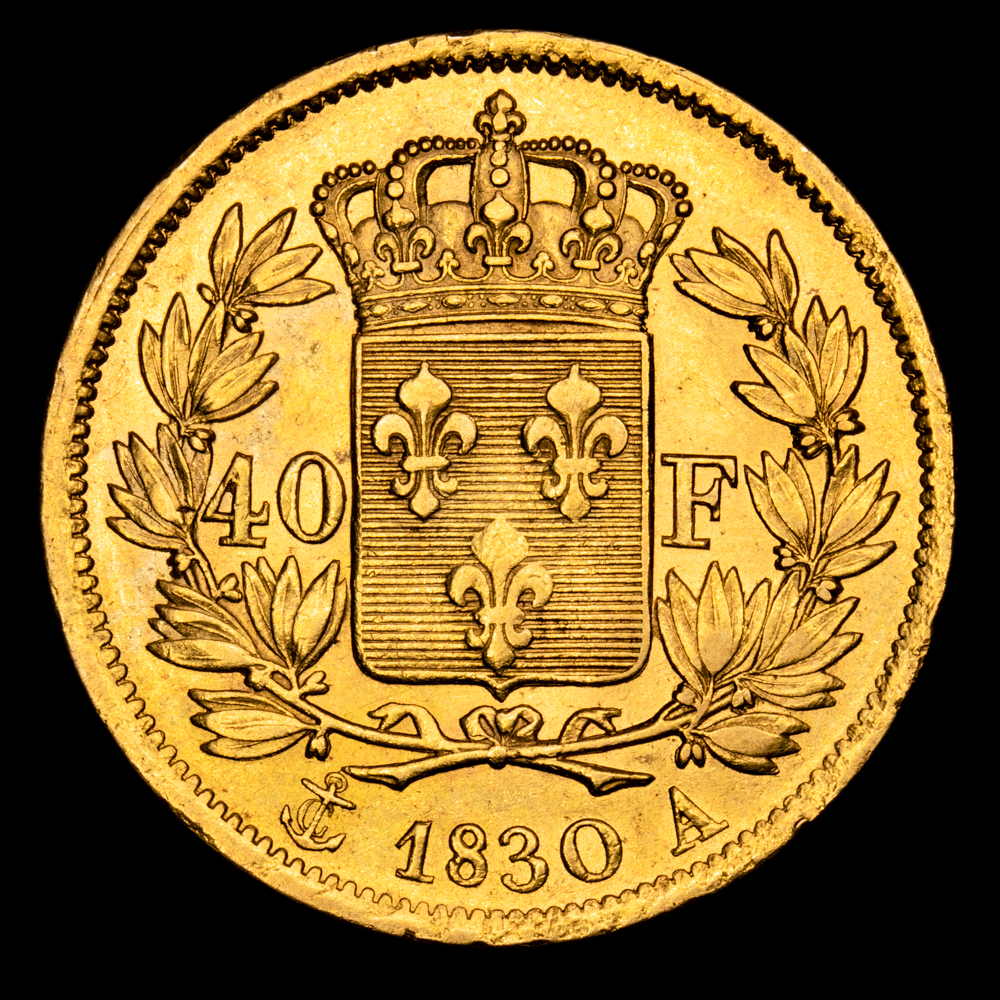 Numismática Barcala > Productos > Monedas Mundiales > Europa > Francia > Francia – Charles X. 40 Francs. (12,91 g.). París. 1830. A. GAD-1105. EBC/EBC+. Restos de brillo original