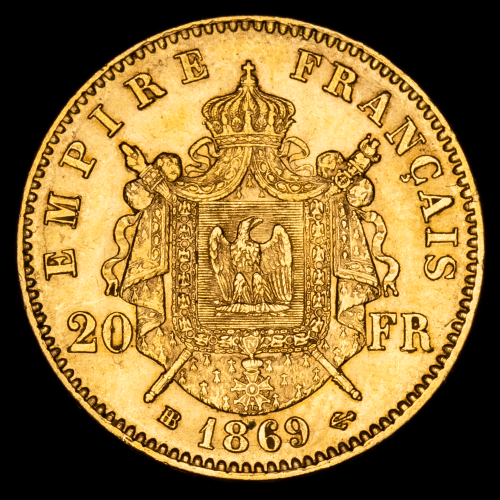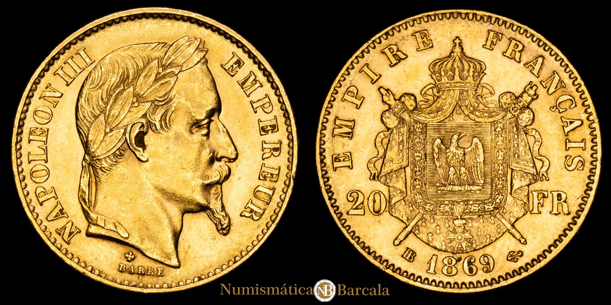 Numismática Barcala > Productos > Monedas Mundiales > Europa > Francia > Francia – Napoleón III. 20 Francos . (6,45g.). Strasbourg. 1869. Ensayador BB. KM-801.2. XF.