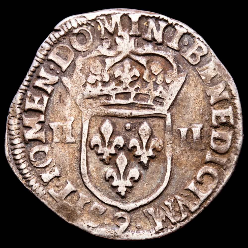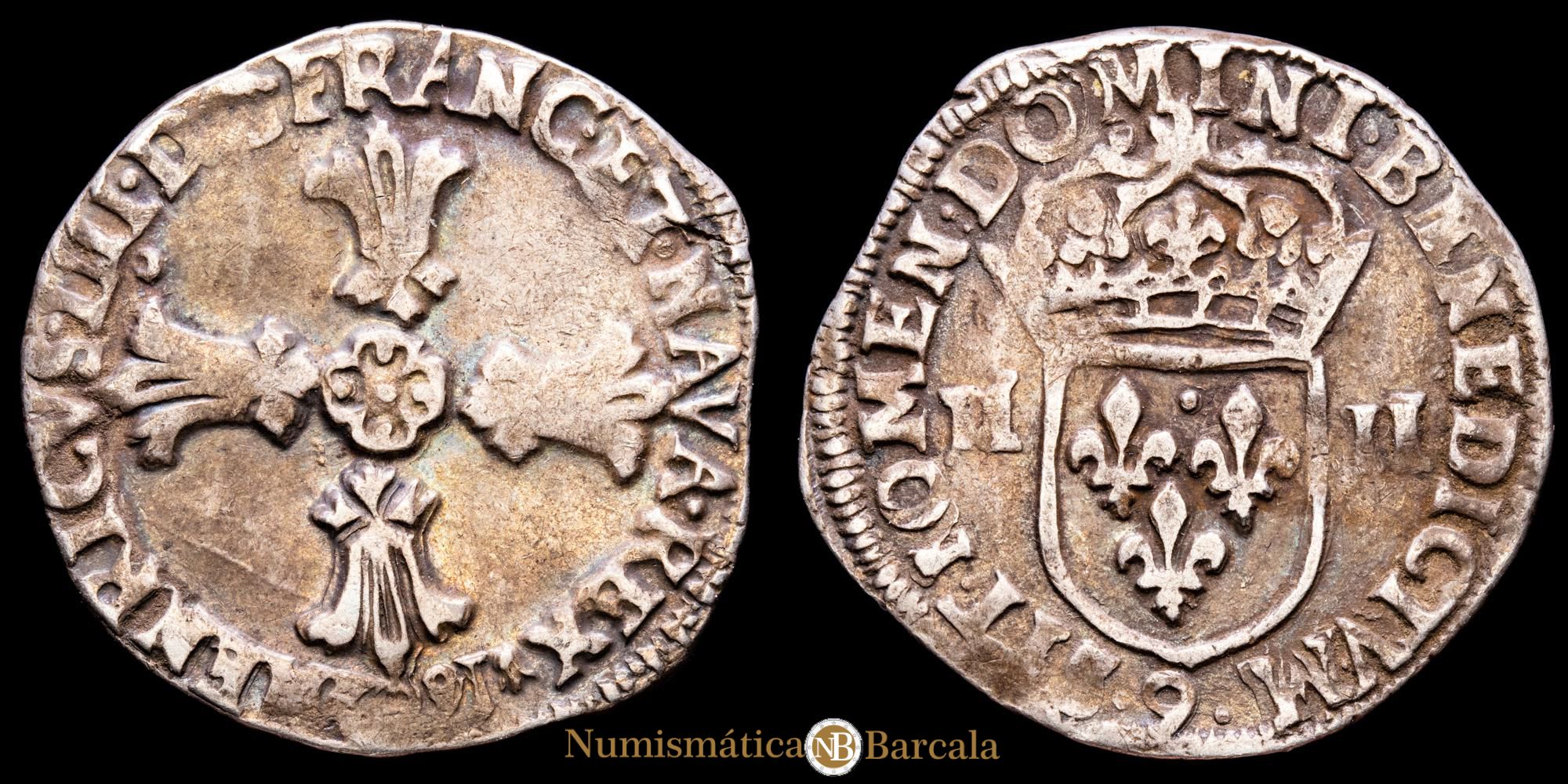 Francia y Navarra – Enrique IV. 1/4 de Ecu. (9,51g.). Rennes. 1609. Ensayador 9. DY-1224. MBC+. 1/2 Franco de Navarra
