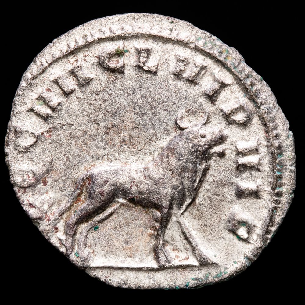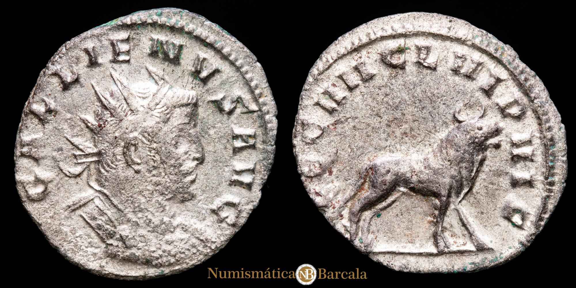 Numismática Barcala > Productos > Romanas > IMPERIO ROMANO > Alto Imperio > 238 - 255 d.C. > Galieno > Galieno. Antoniniano. (2,43 g.). Mediolanum, 260-261 d.C. LEG VII CL VI P VI F. RIC V (joint reign) 348. MBC+. Extremadamente raro.