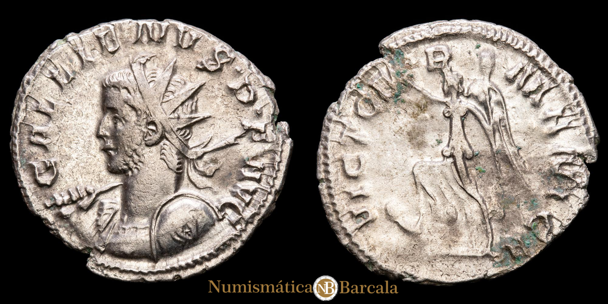 Numismática Barcala > Productos > Romanas > IMPERIO ROMANO > Galieno. Antoniniano plateado (3,77 g.). Roma, 258-259 a.C. VICT GERMANICA. RIC 44. EBC