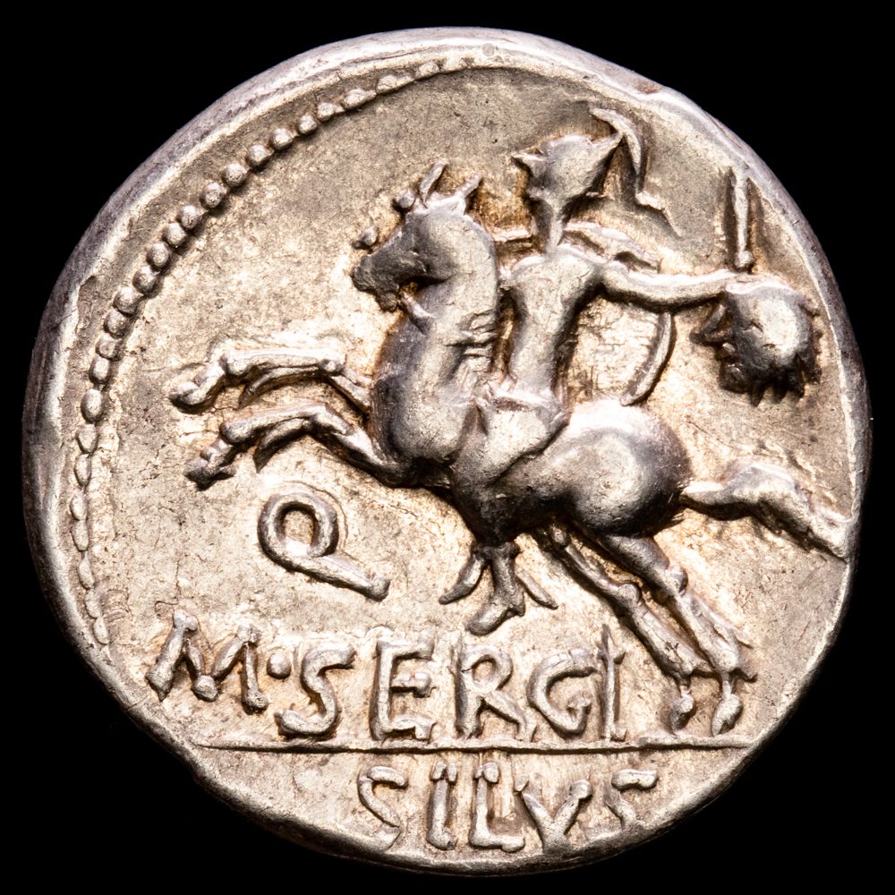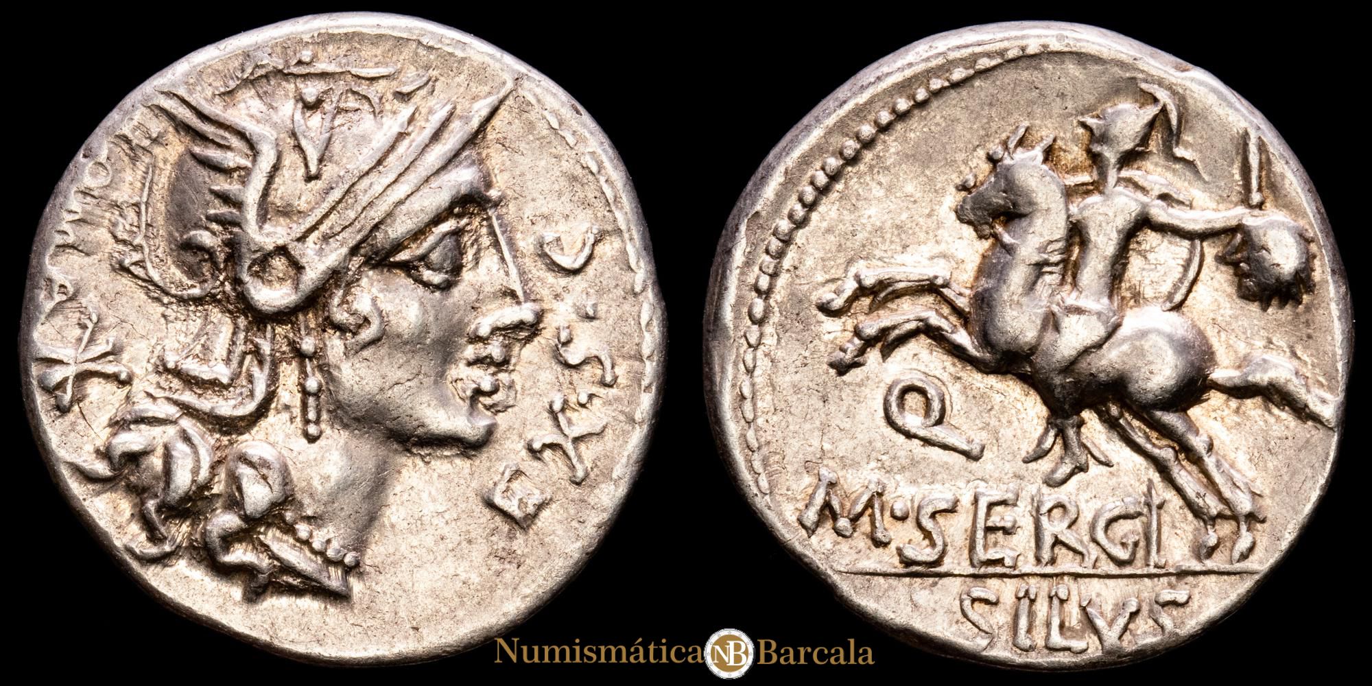 Numismática Barcala > Productos > Romanas > REPÚBLICA > Gens-Sergia. Denario. (3,91 g.). Roma. 116-115 a.C.. CRAW-286/1. XF. Restos de brillo original