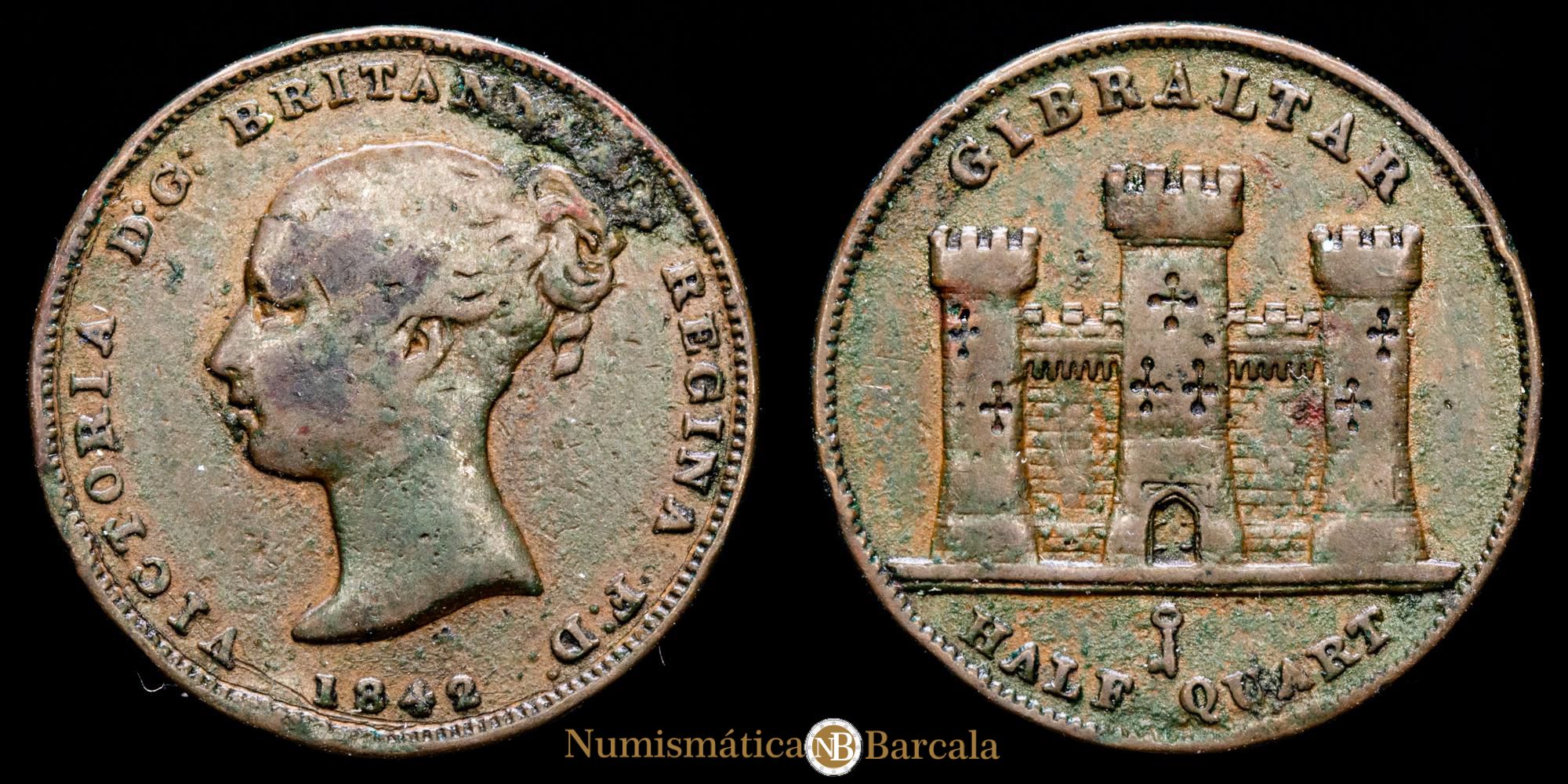 Gibraltar. 1/2 Quartos. (2,55g.). 1842. KM-1. MBC.